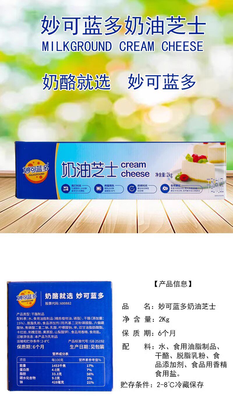 Miao Ke Lan Duo Cream Cheese 2kg*5 Boxes of Processed Cheese Light Cheesecake Cream Cheese Bread Baking