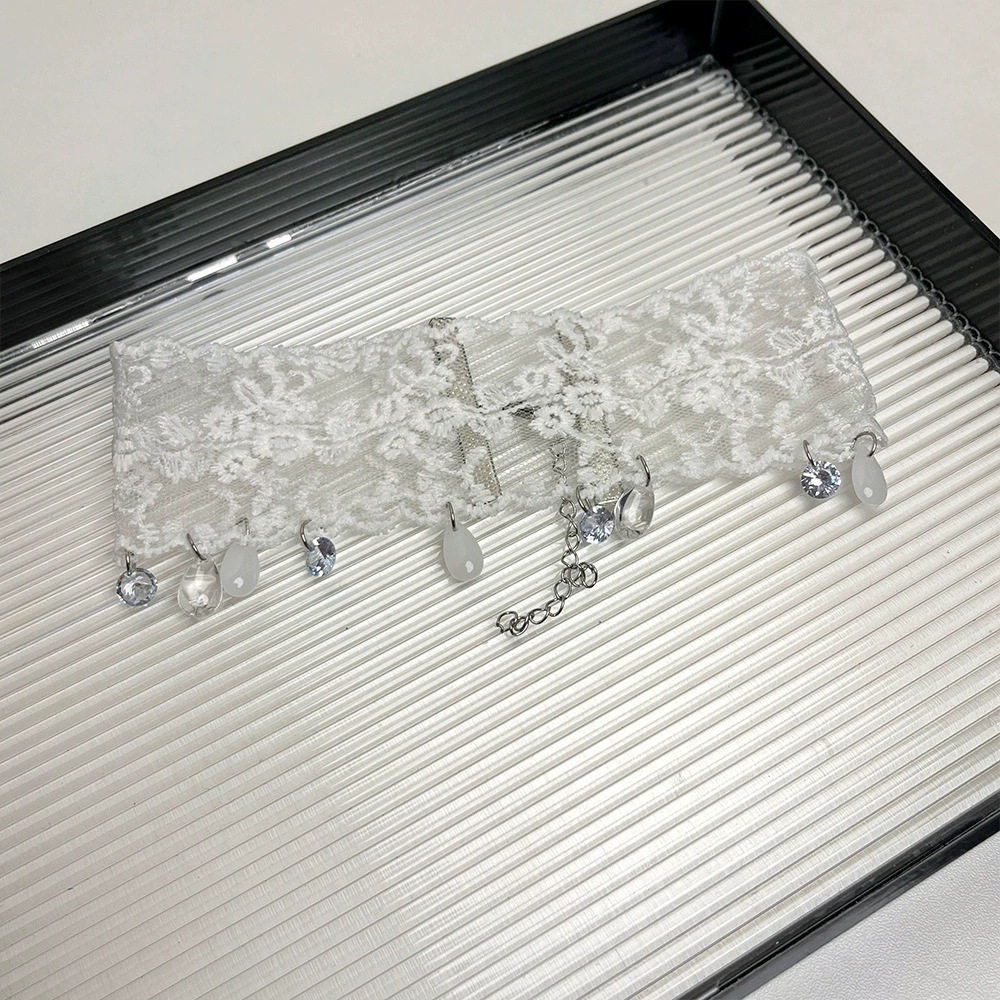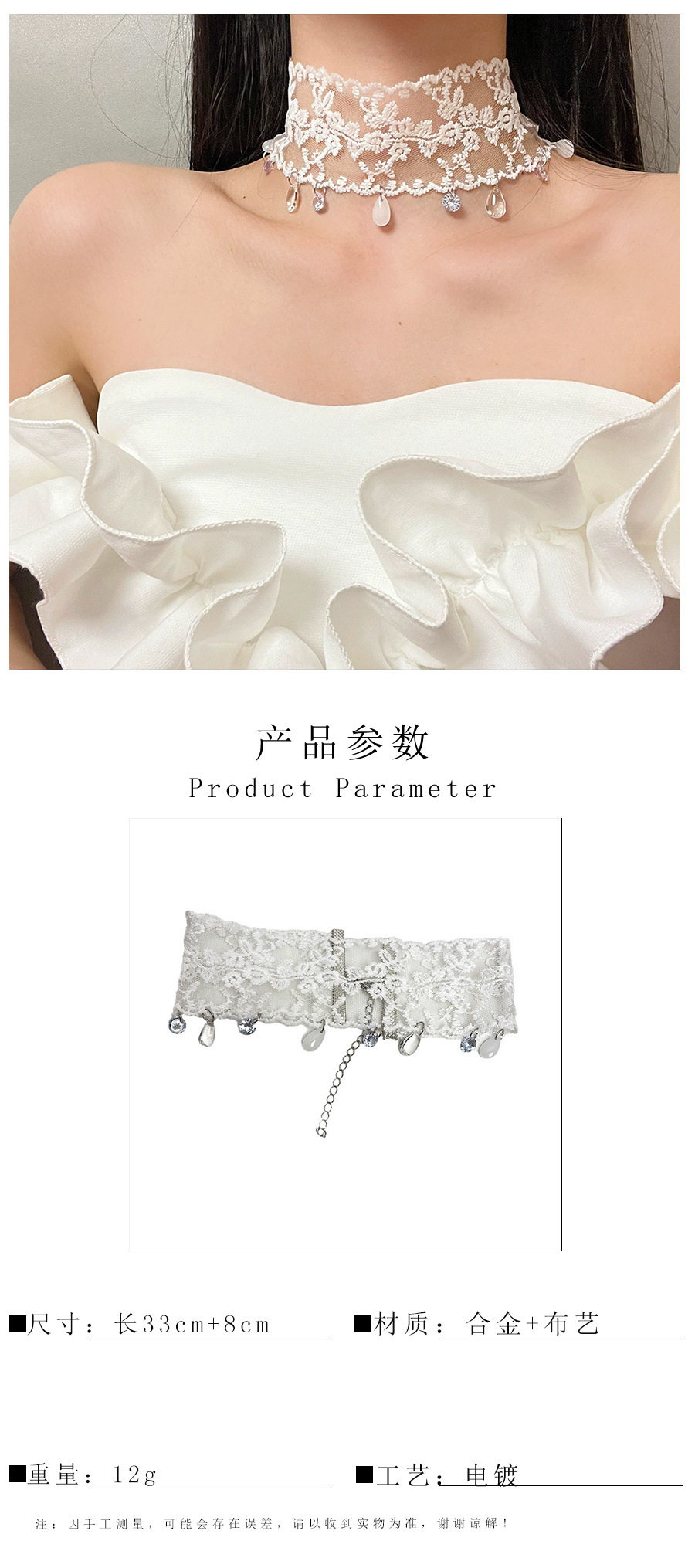 Sweet White Lace Wide Neck Strap Neck Chain Water Drop Tassel Simple Elegant All-match Collar Necklace Women's Necklace Accessories