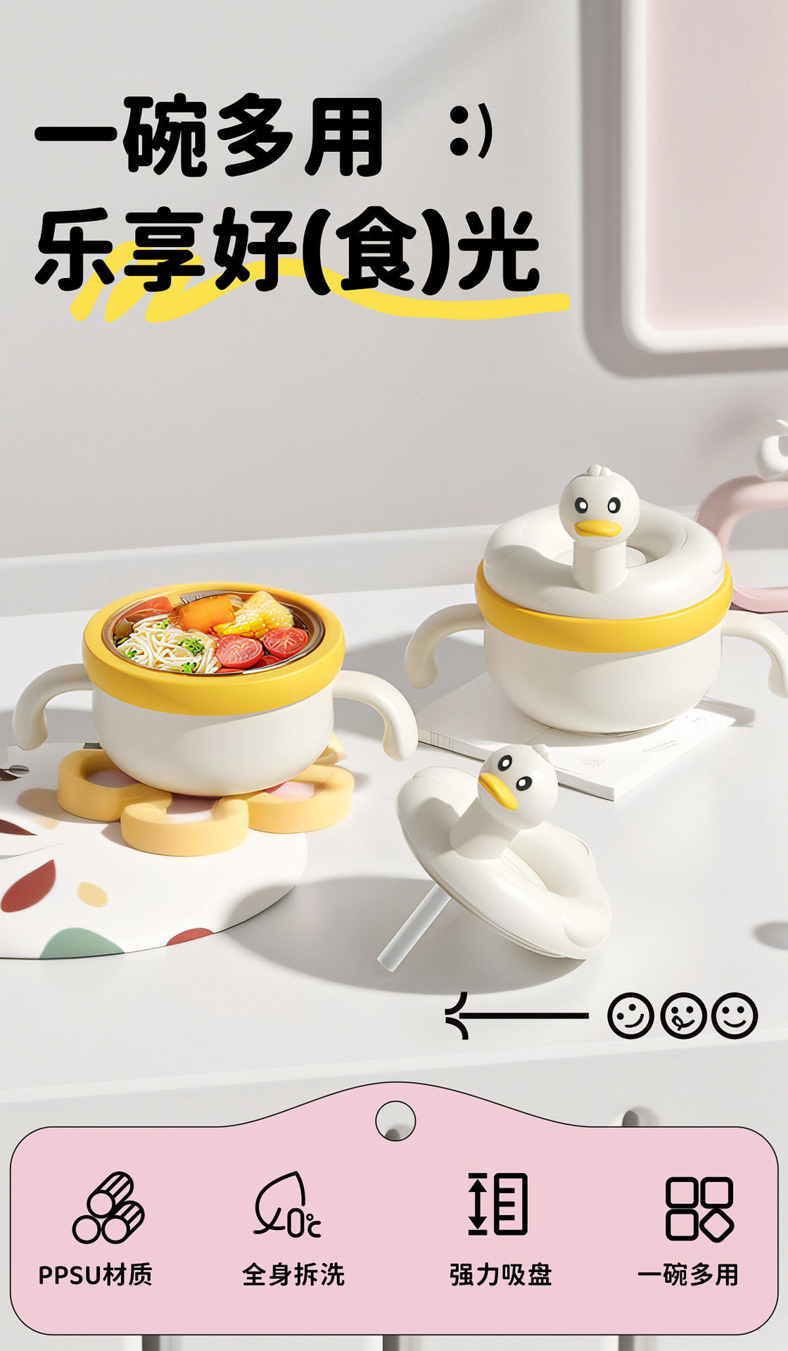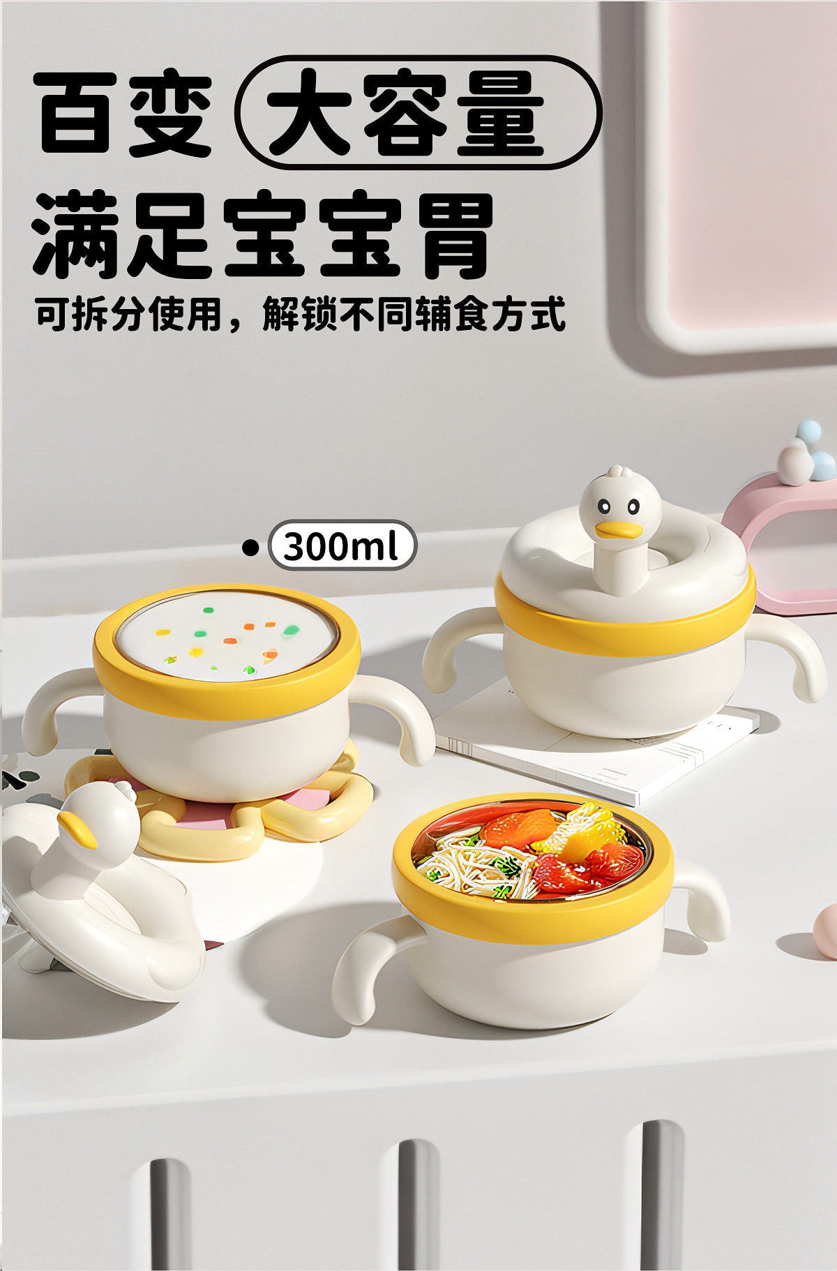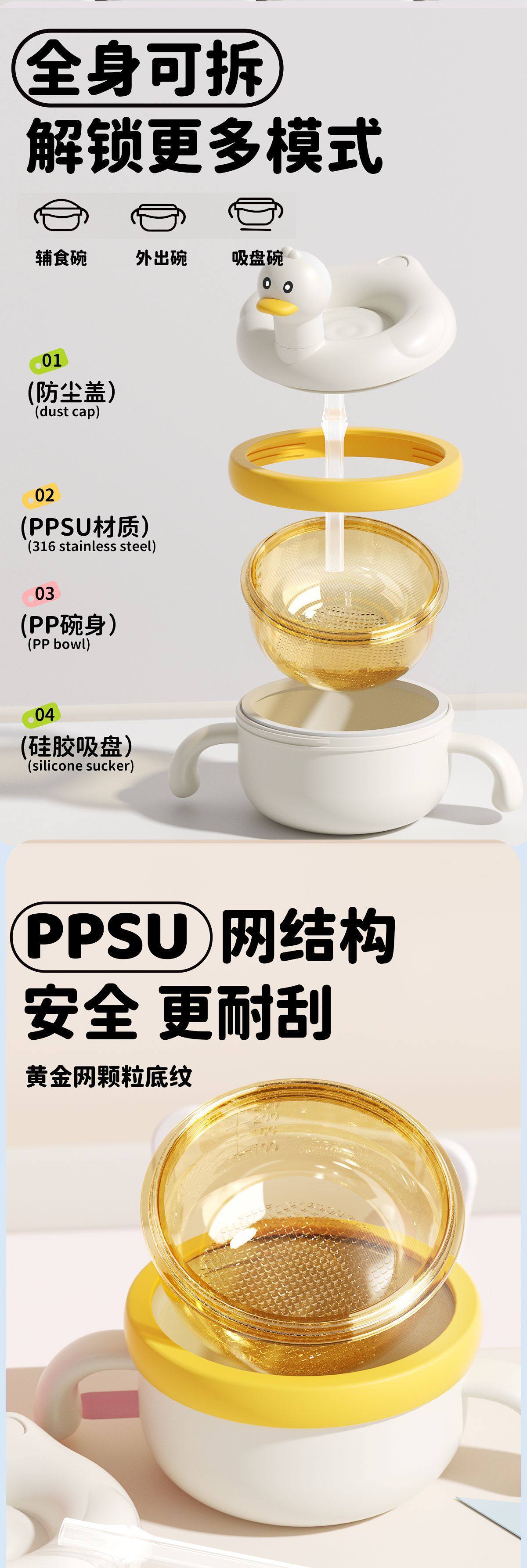 PPSU Baby Food Bowl Baby Rice Noodle Meal Special Water Injection Heat Preservation Bowl Constant Temperature Suction Bowl Children's Tableware