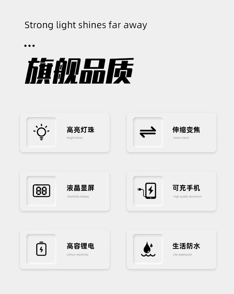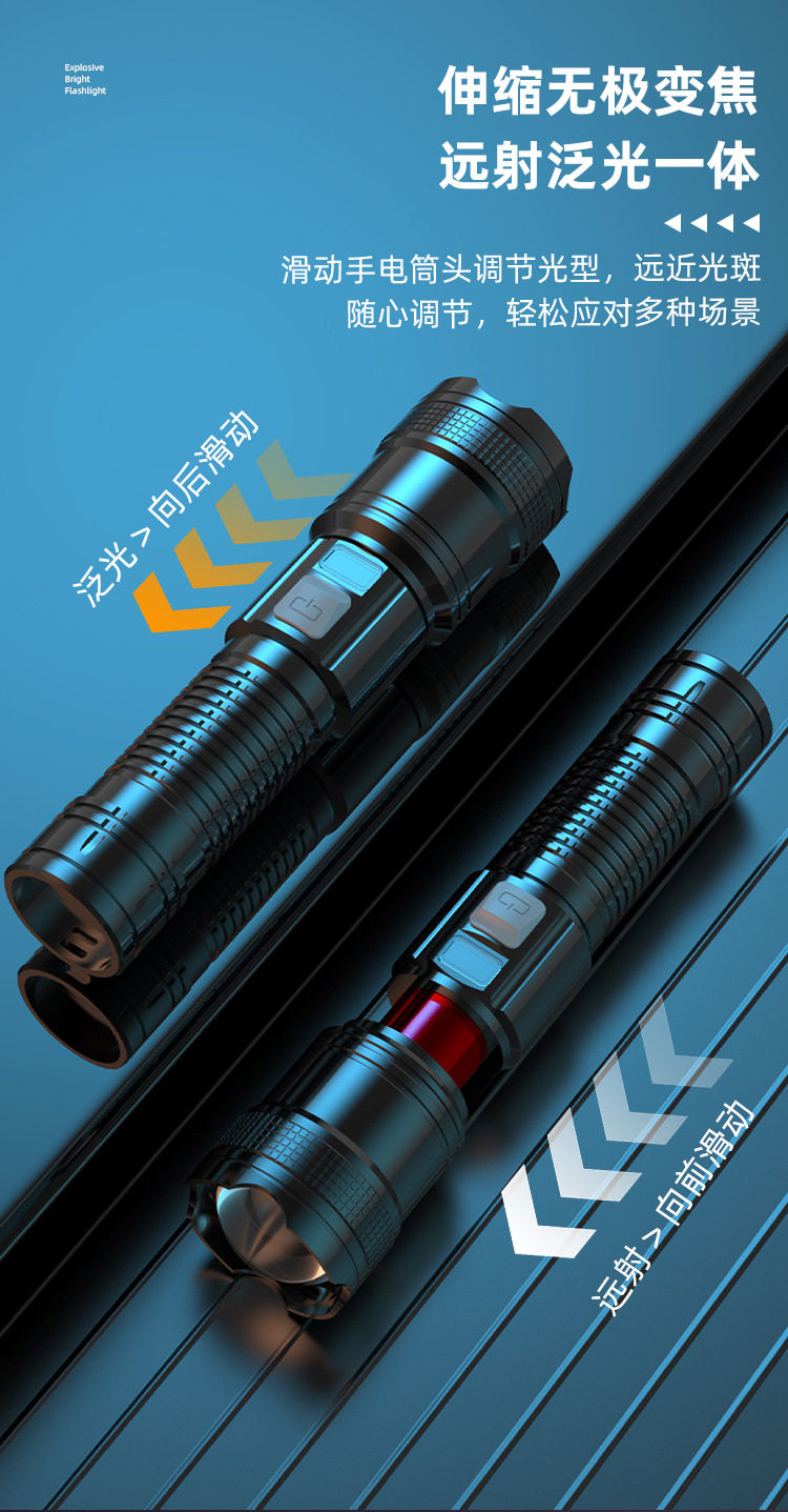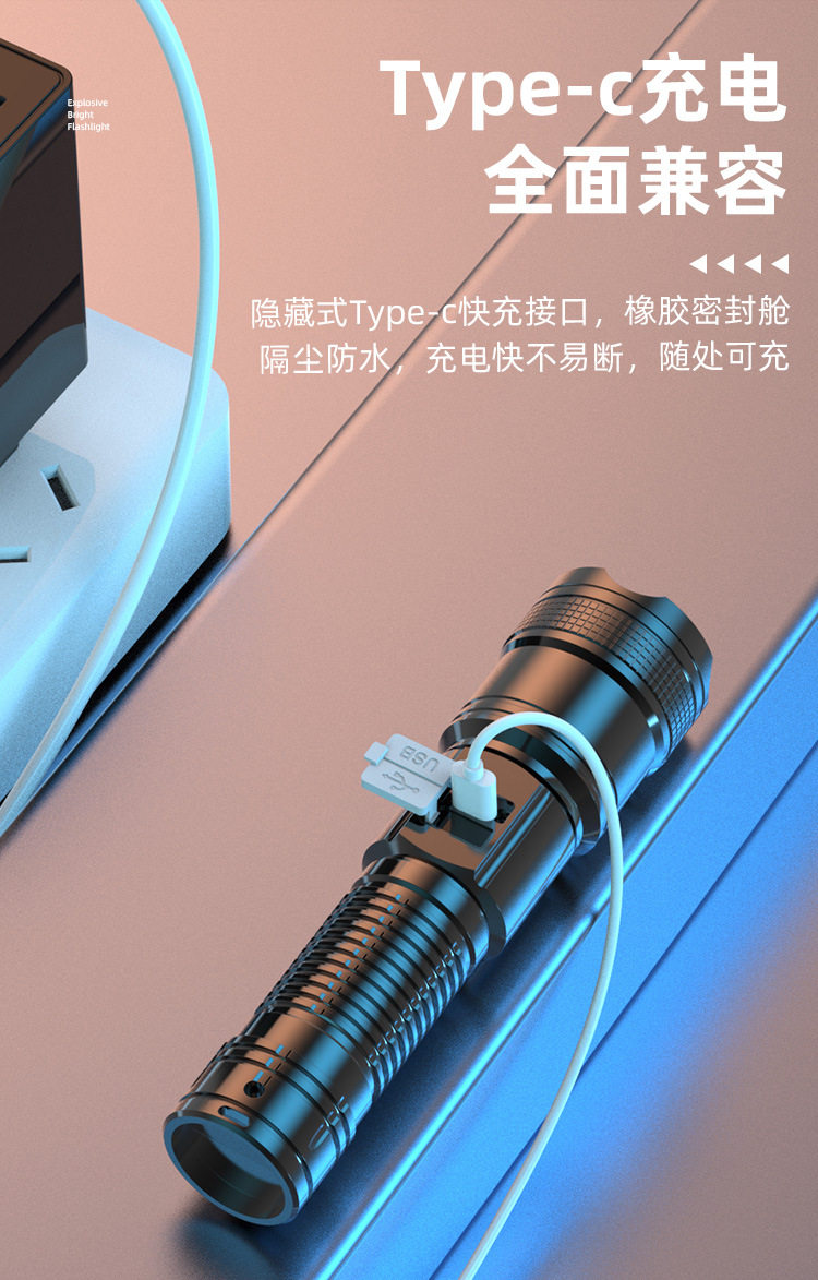 E-commerce explosions outdoor flashlight zoom multifunctional portable charging ultra-bright long-range long-range hand