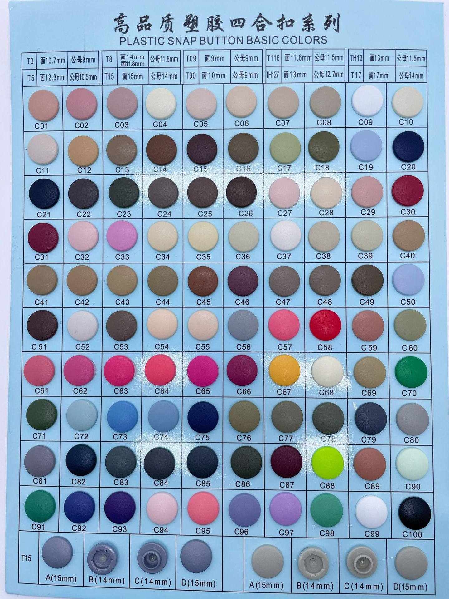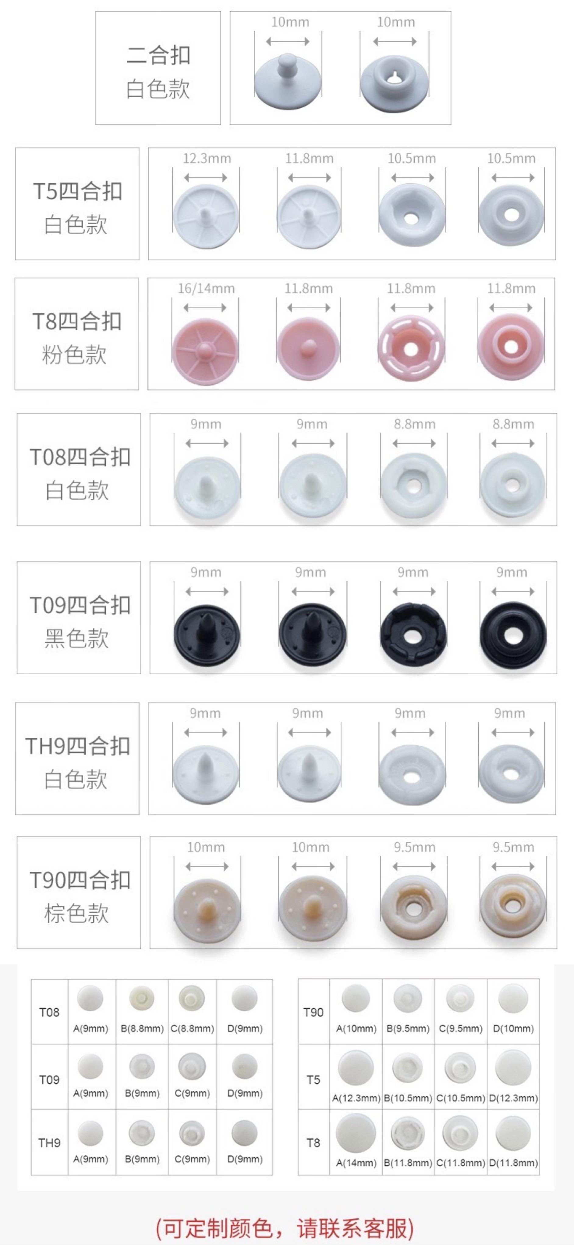 | Specifications and models | T5-12.3mm four-button matte black (250 colors optional),9mm face buckle color male and female buckle transparent white,T3-10.7mm black (30 colors in stock),For other sizes, please contact customer service to change the price |