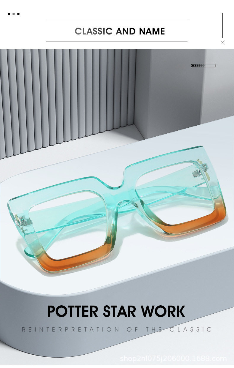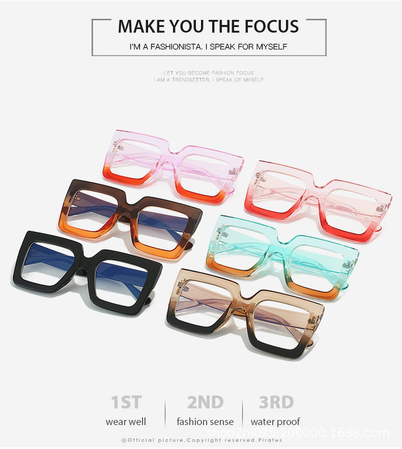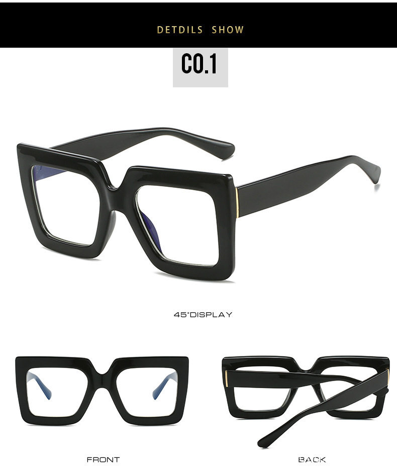 European and American fashion glasses frame square large frame simple flat mirror anti-blue cross-border ins concave shape glasses frame for women