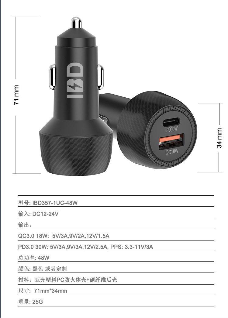 Ibd New Mini 48W Dual-Port USB C Car Charger Super Fast Charging Pd30W Qc18W Car Charger