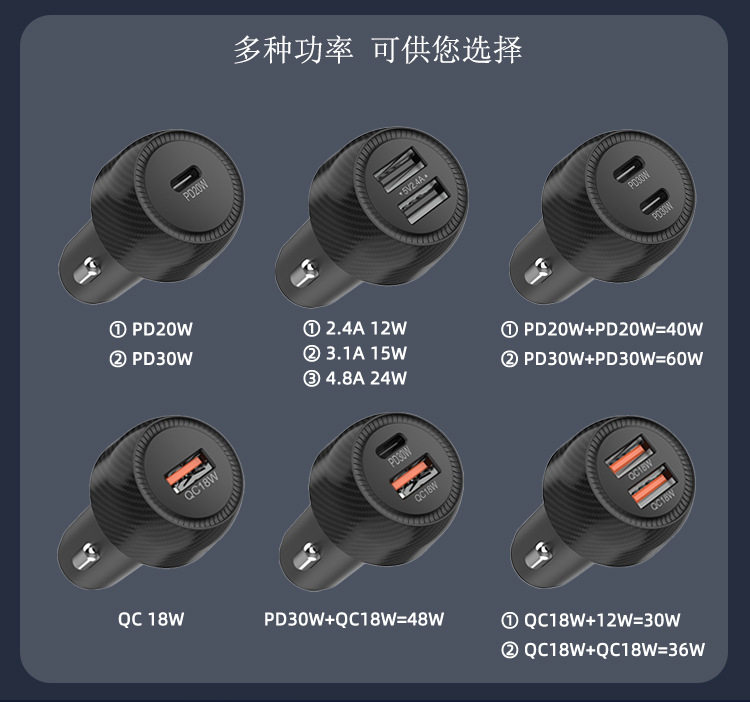 | Model | Pd30w+qc18w=48w car charger |