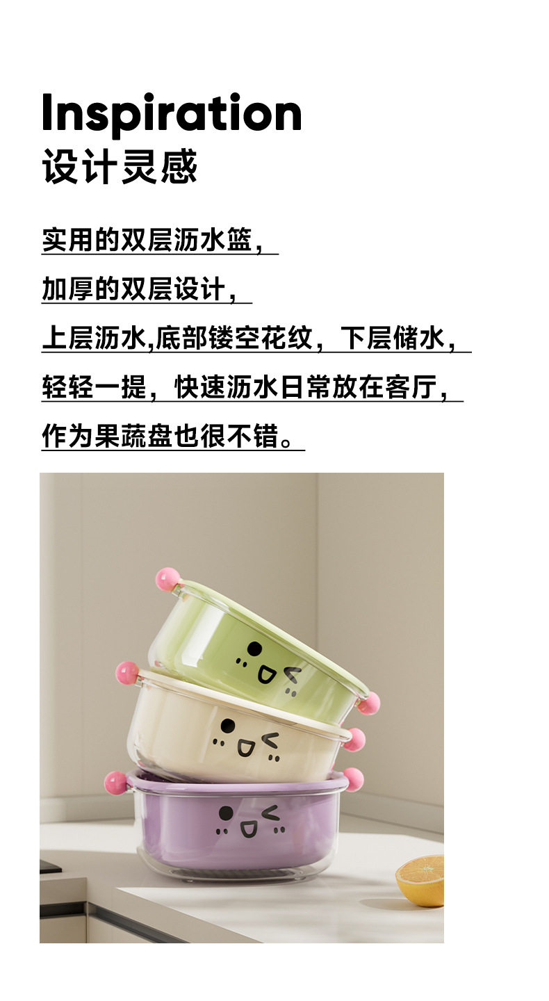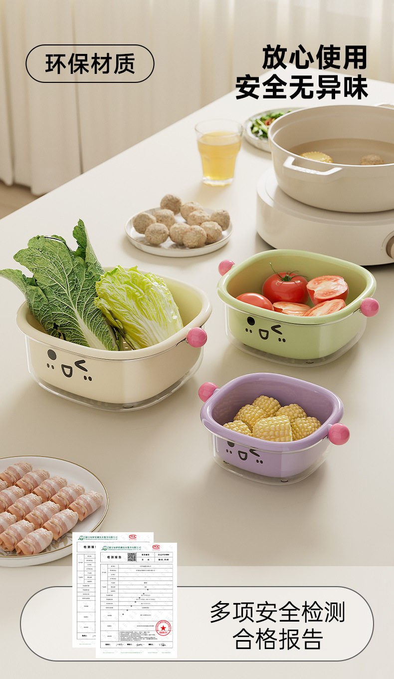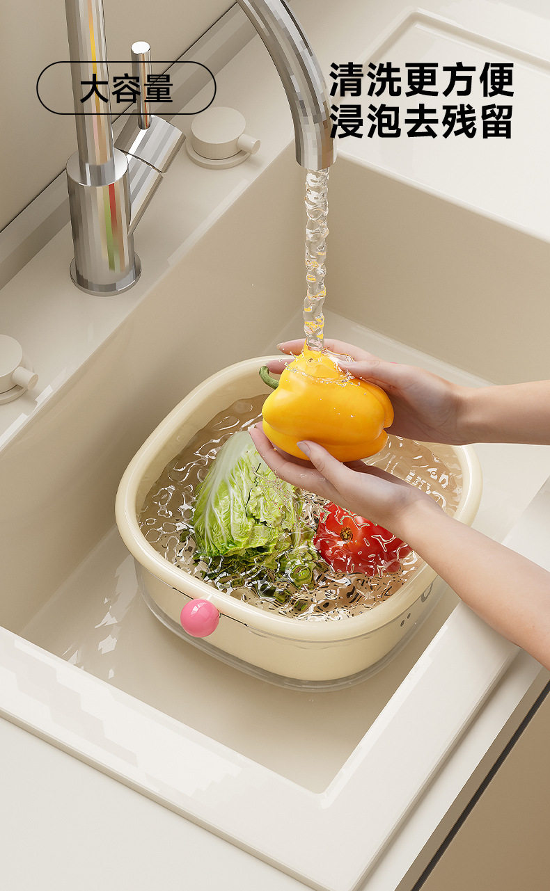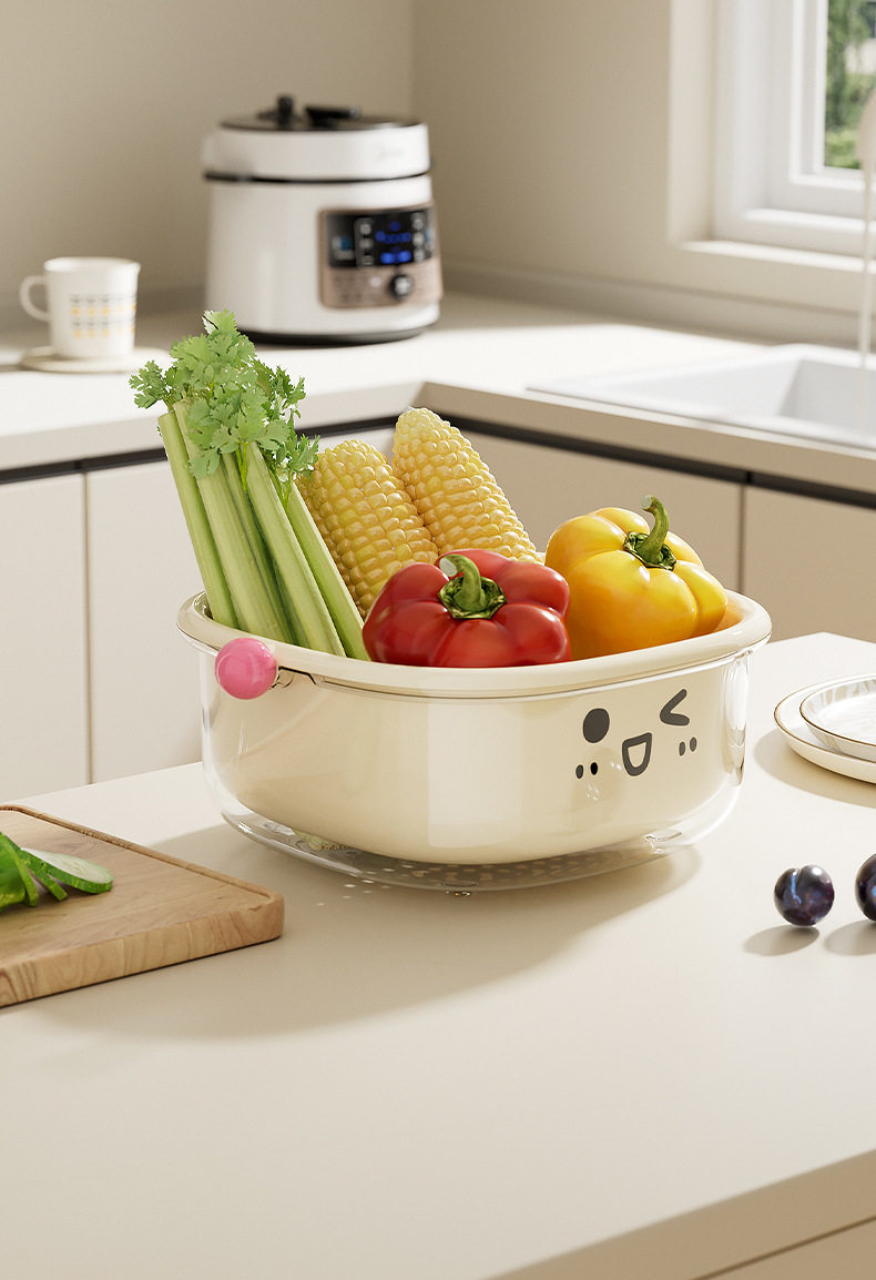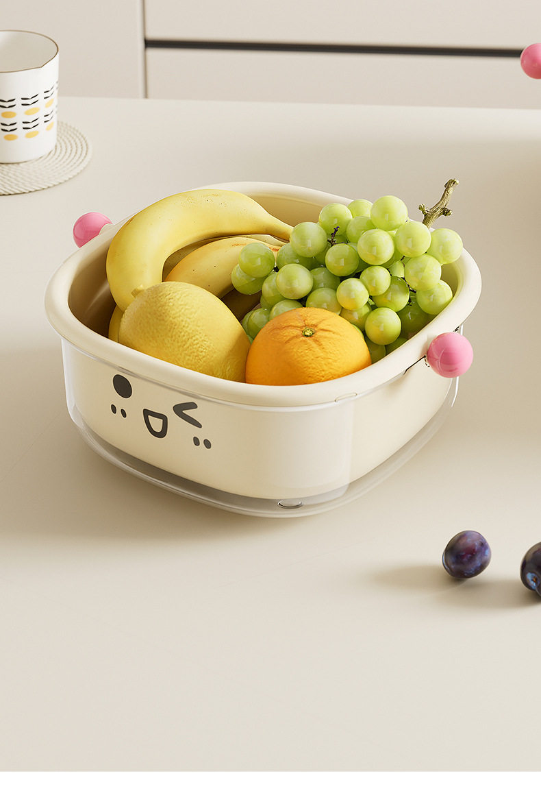 Dopamine Double-Layer Drain Basket New Kitchen Home Living Room Coffee Table Large Fruit Plate Inverted Cover Dust-Proof Vegetable Basin