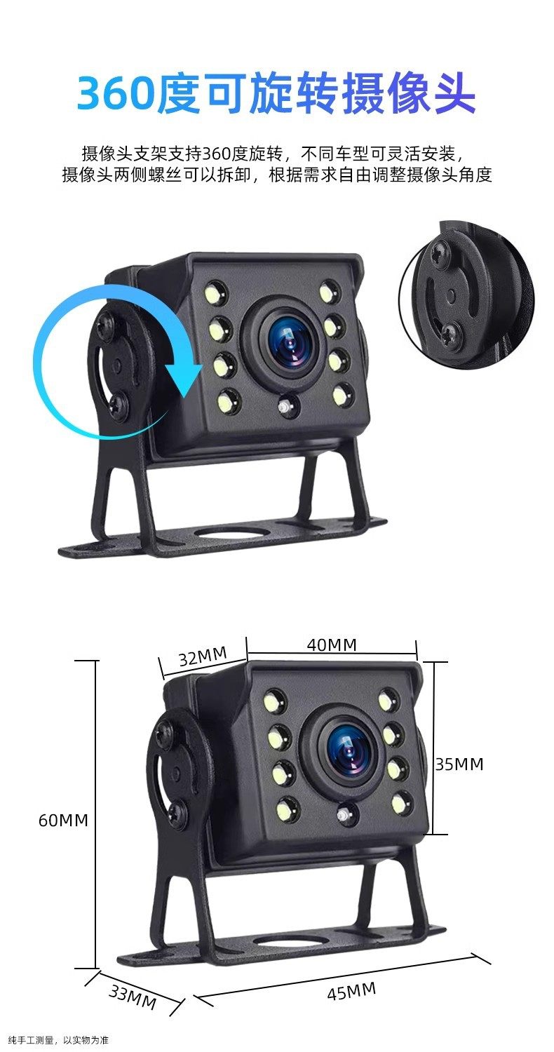 Truck bus reversing image 12v24V universal high-definition night vision rear view camera harvester car display
