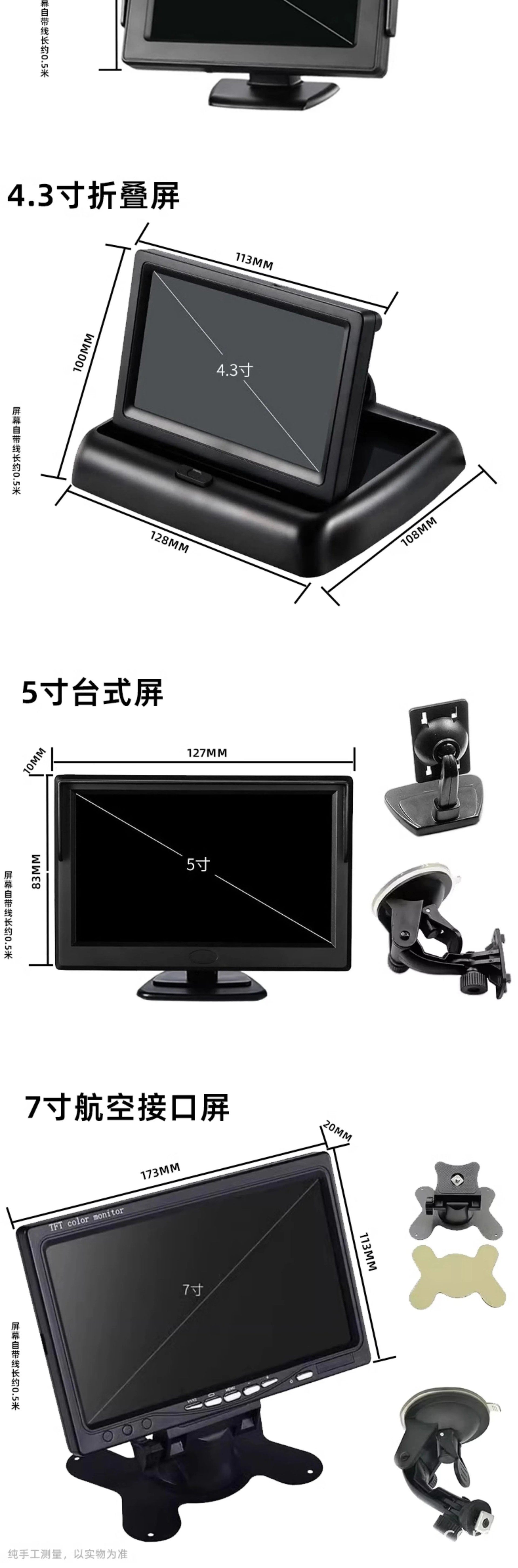 | Color | 4.3inch cvbs aviation interface desktop screen,4.3inch cvbs desktop + 8 lights hd camera + 10m wires,4.3inch cvbs desktop + 8 lights hd camera + 15m wires,4.3inch cvbs aviation interface foldableing screen,4.3inch cvbs foldable + 8-light hd camera + 10m wires,4.3inch cvbs foldable + 8-light hd camera + 15m wires,5inch cvbs aviation interface desktop screen,5inch cvbs desktop + 8 lights hd camera + 10m wires,5inch cvbs desktop + 8 lights hd camera + 15m wires,5inch cvbs desktop + 8 lights hd camera + 20m wires,7inch cvbs aviation interface desktop screen,7inch cvbs screen + 8 lights hd camera + 10m wires,7inch cvbs screen + 8 lights hd camera + 15m wires,7inch cvbs screen + 8 lights hd camera + 20m wires,7inch ahd aviation interface desktop screen,7inch ahd screen + 8 lights ahd hd camera + 10m wires,7inch ahd screen + 8 lights ahd hd camera + 15m wires,7inch ahd screen + 8 lights ahd hd camera + 20m wires |
