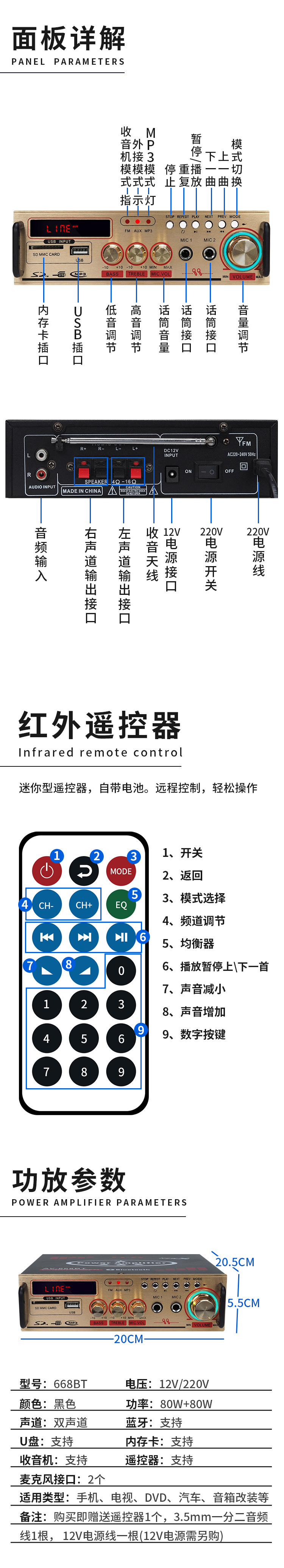 High power bluetooth amplifier 220V new family ktv professional karaoke fever HIFI loudspeaker AV-668BT