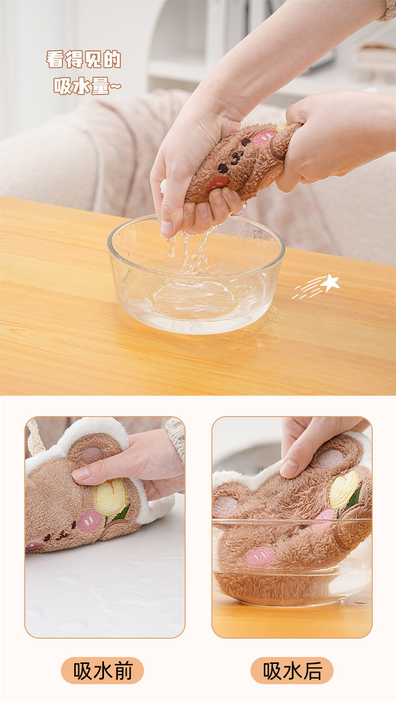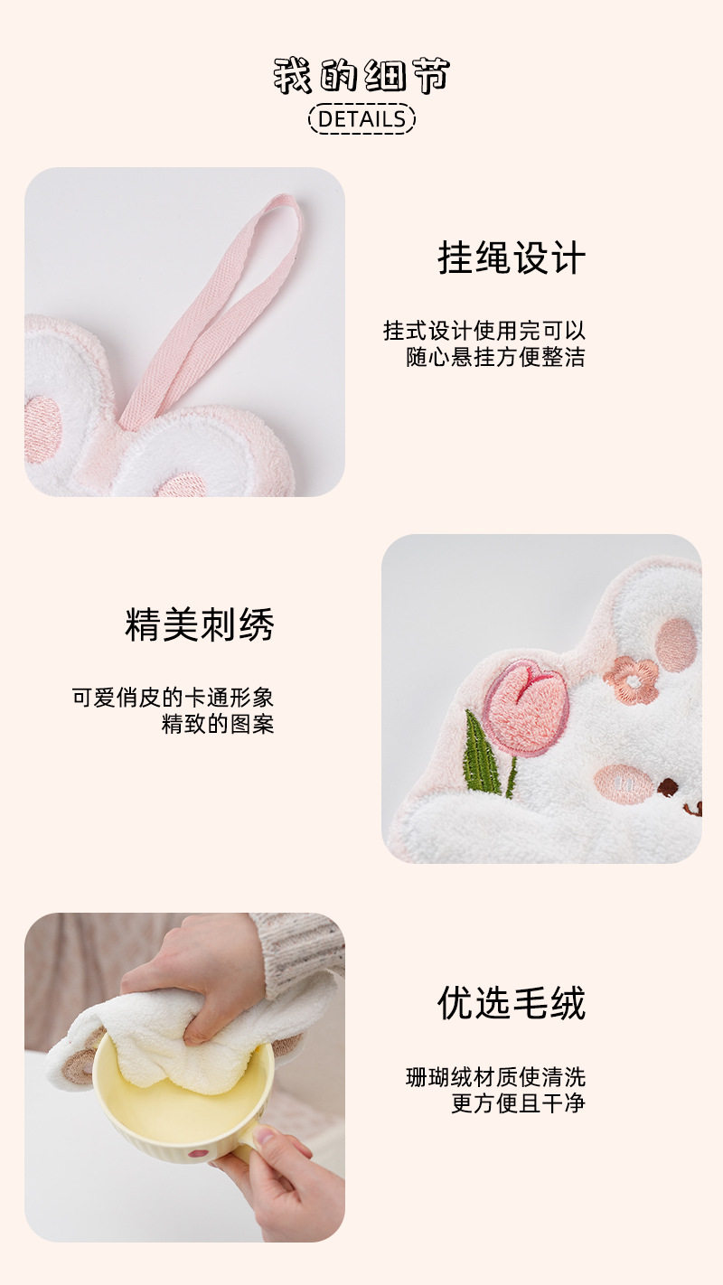Cartoon Cute Coral Fleece Rabbit Multifunctional Sassafras Hand Towel Home Dining Living Room Decoration Absorbent Hanging Hand Towel Good