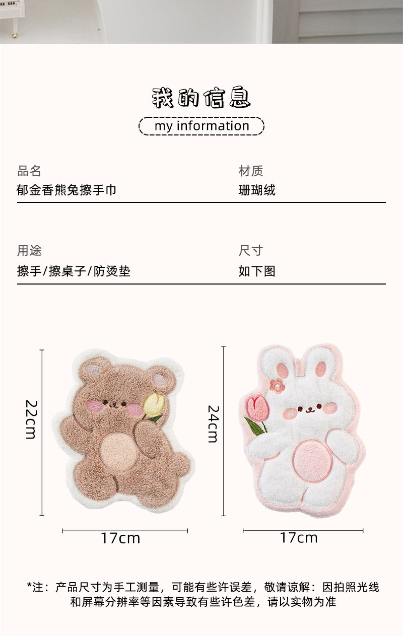 | Color | Tulip bear hand towel,Tulip bunny hand towel |