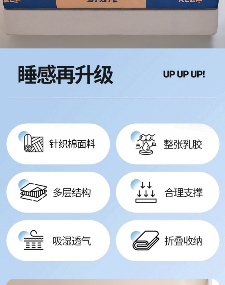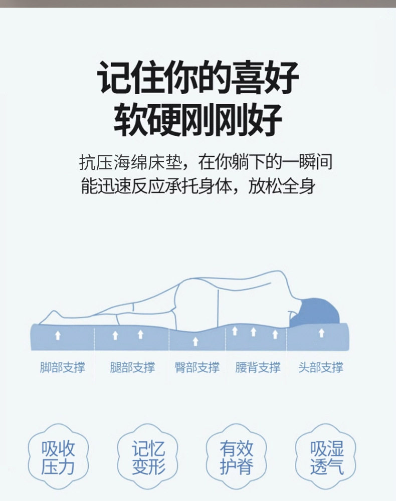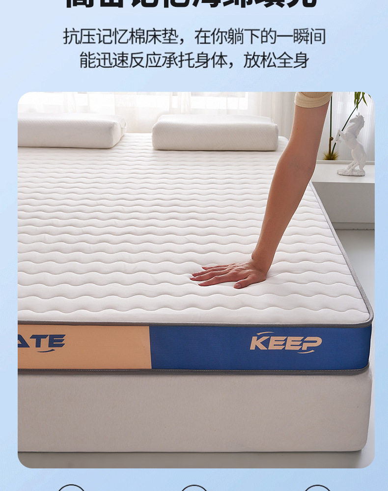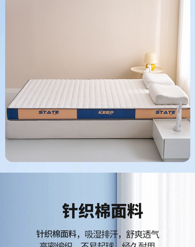 | Size specifications | 80*190 (thickness 4cm),80*190 (thickness 8cm),90*190 (thickness 4cm),90*190 (thickness 8cm),90*200 (thickness 4cm),90*200 (thickness 8cm),120*190 (thickness 4cm),120*190 (thickness 8cm),120*200 (thickness 4cm),120*200 (thickness 8cm),150*190 (thickness 4cm),150*190 (thickness 8cm),150*200 (thickness 4cm),150*200 (thickness 8cm),180*200 (thickness 4cm),180*200 (thickness 8cm) |