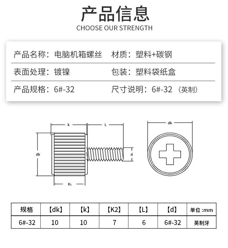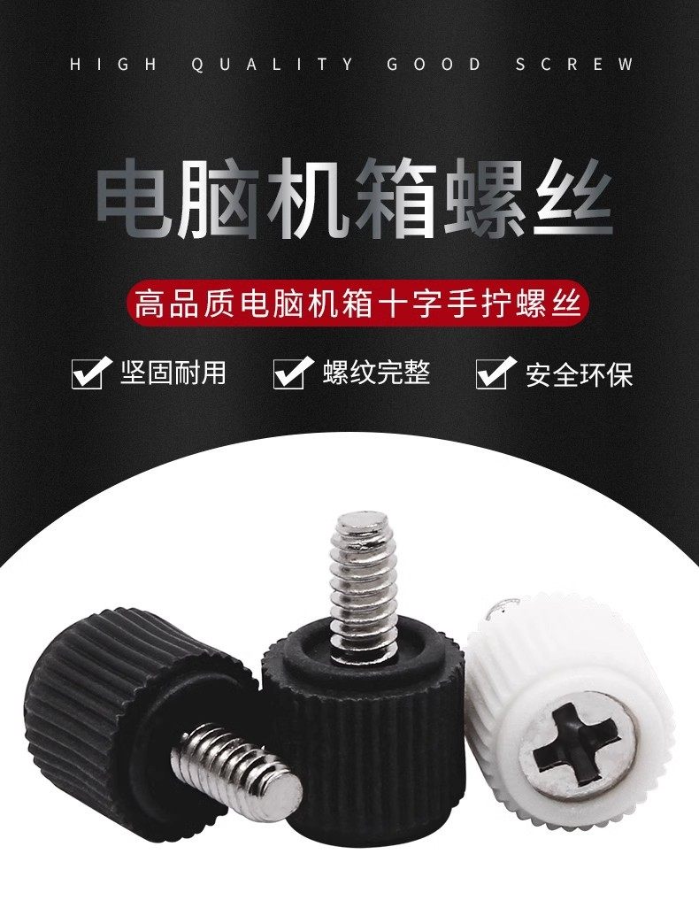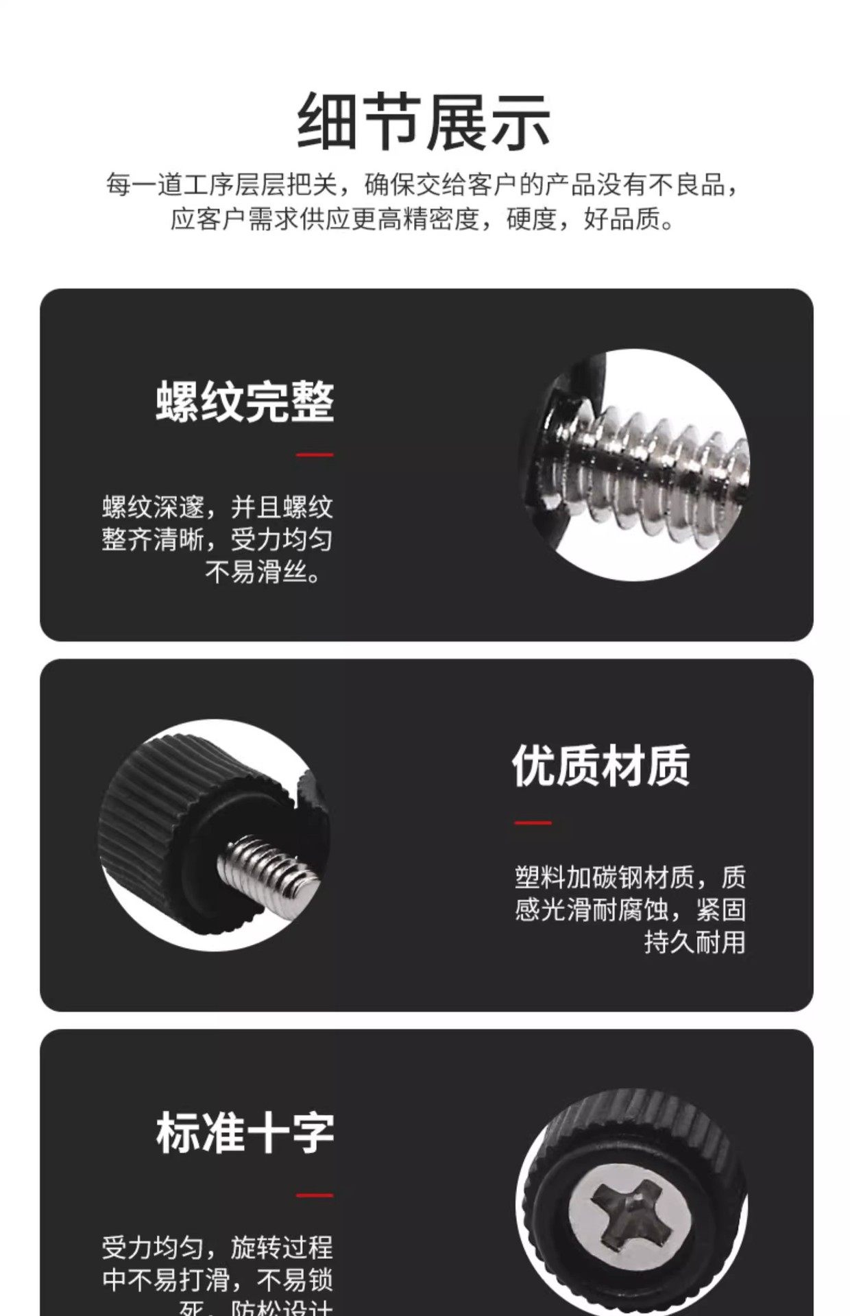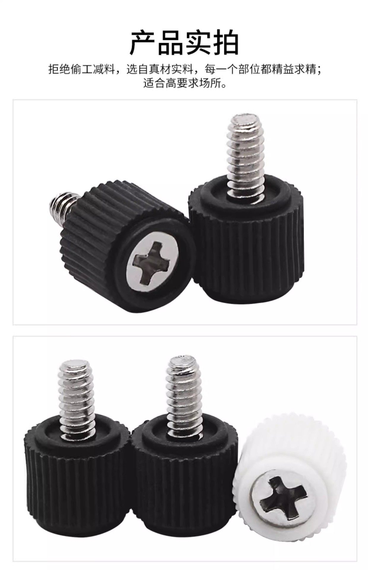 Computer case screw rubber head Phillips hand screw black inch tooth handle screw 6#-32 side plate screw