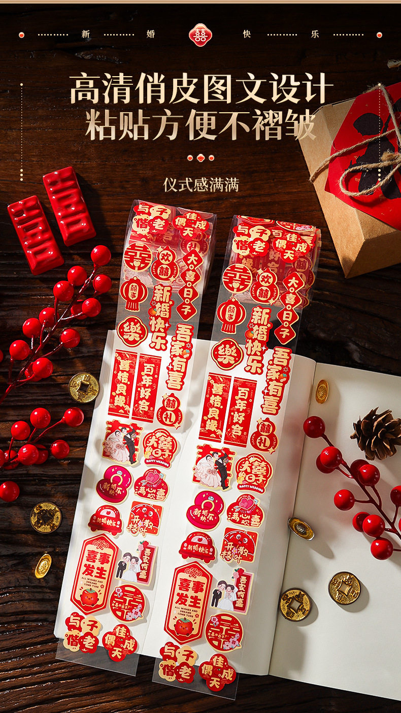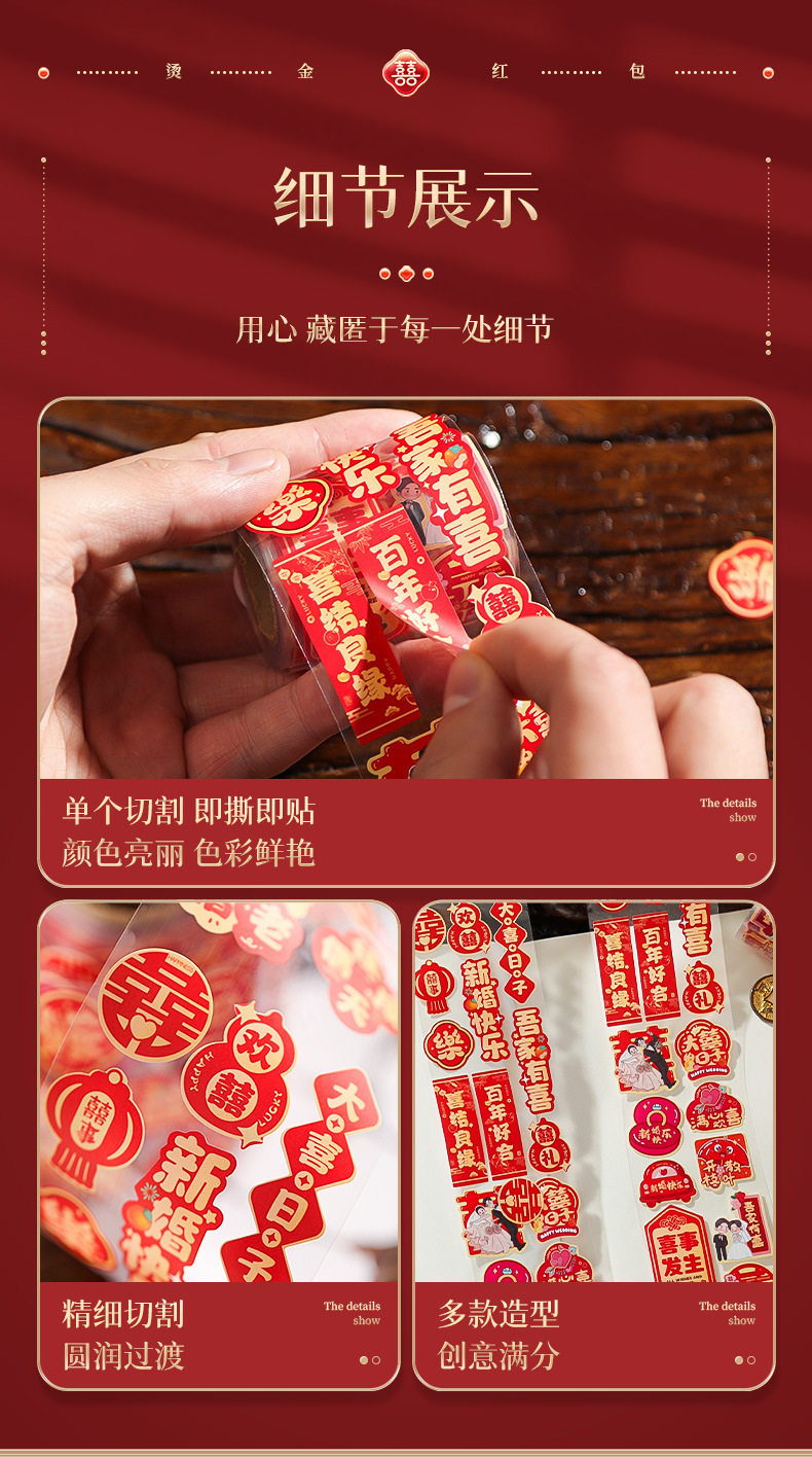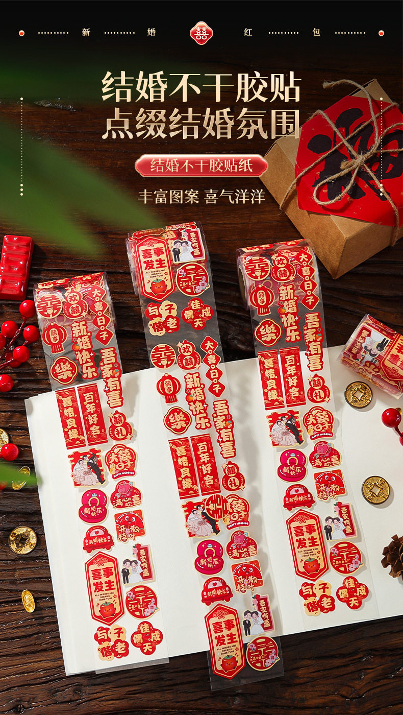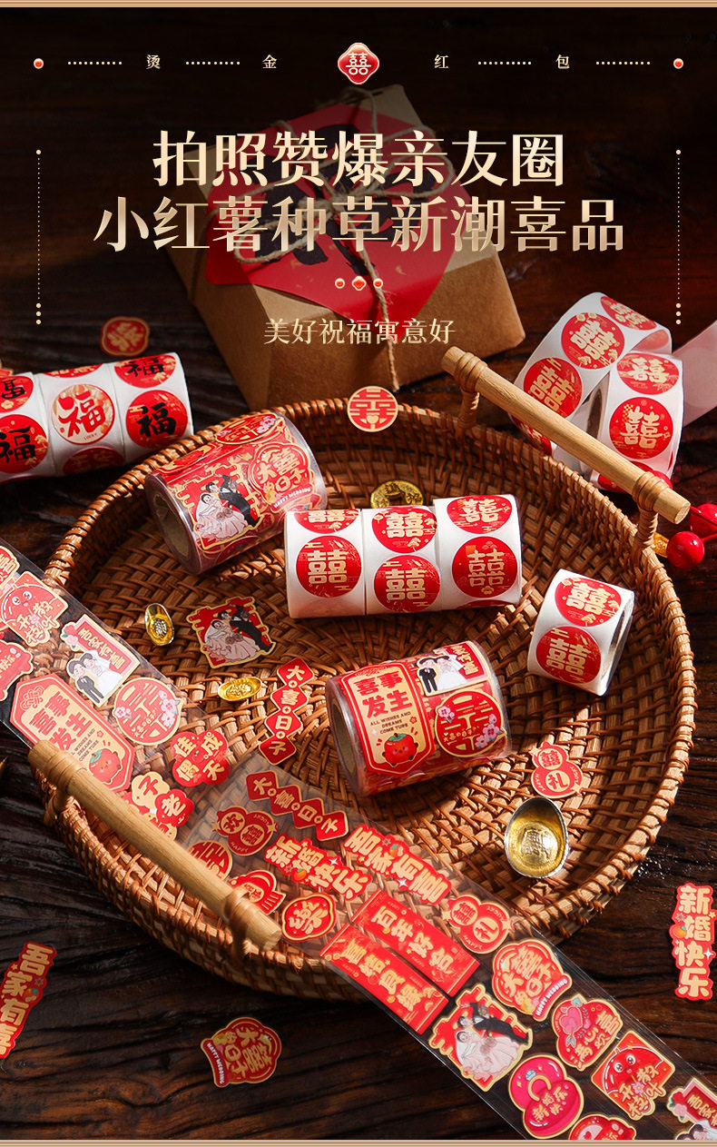 | Specification | A hundred years of good cooperation (about 138 posts),My family is happy (about 138 posts),Tying the knot (about 138 posts),Hundred years of harmony-07 (about 200 stickers),[red] internet celebrity yuanxi (about 500 stickers per roll),[gold] internet celebrity yuanxi (about 500 stickers per roll),[red] yuanxi (about 500 stickers per roll),[gold] yuanxi (about 500 stickers per roll),[red] cao xi (about 500 stickers per roll),[golden] cao xi (about 500 stickers per roll),[red] fang xi (about 500 stickers per roll),[red] open yuansi (about 500 stickers per roll) |
