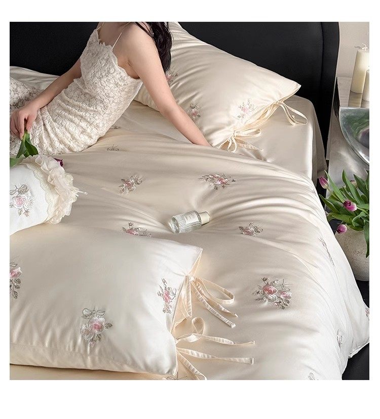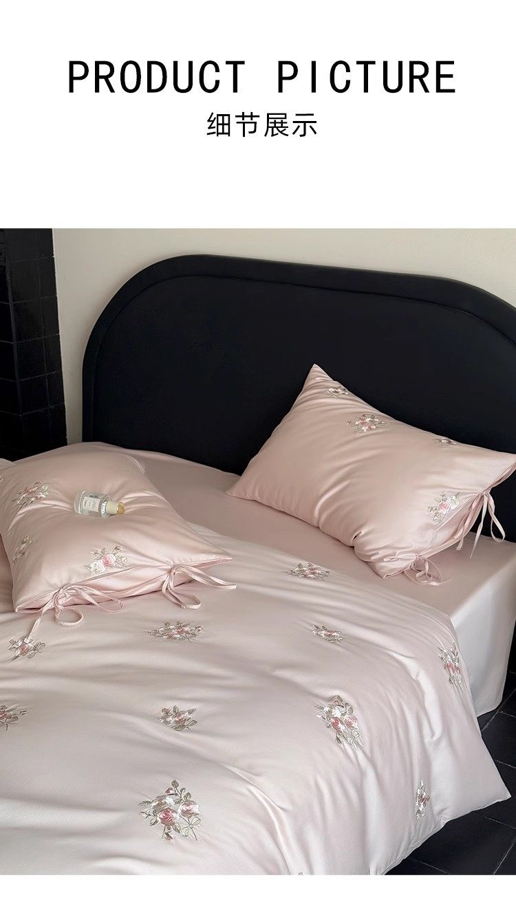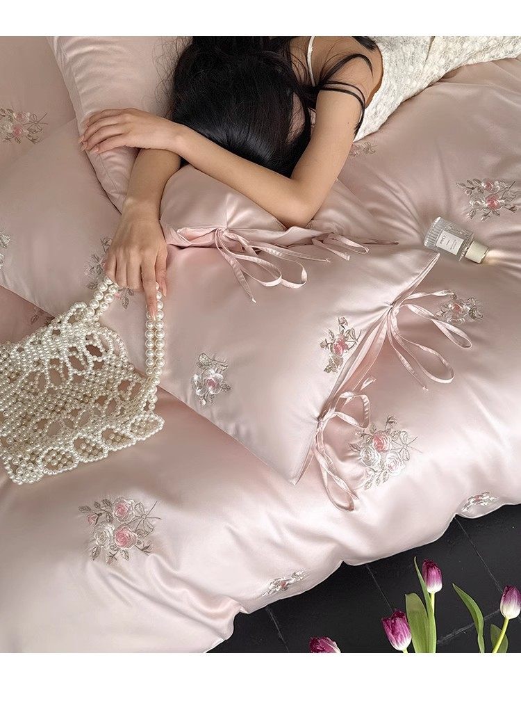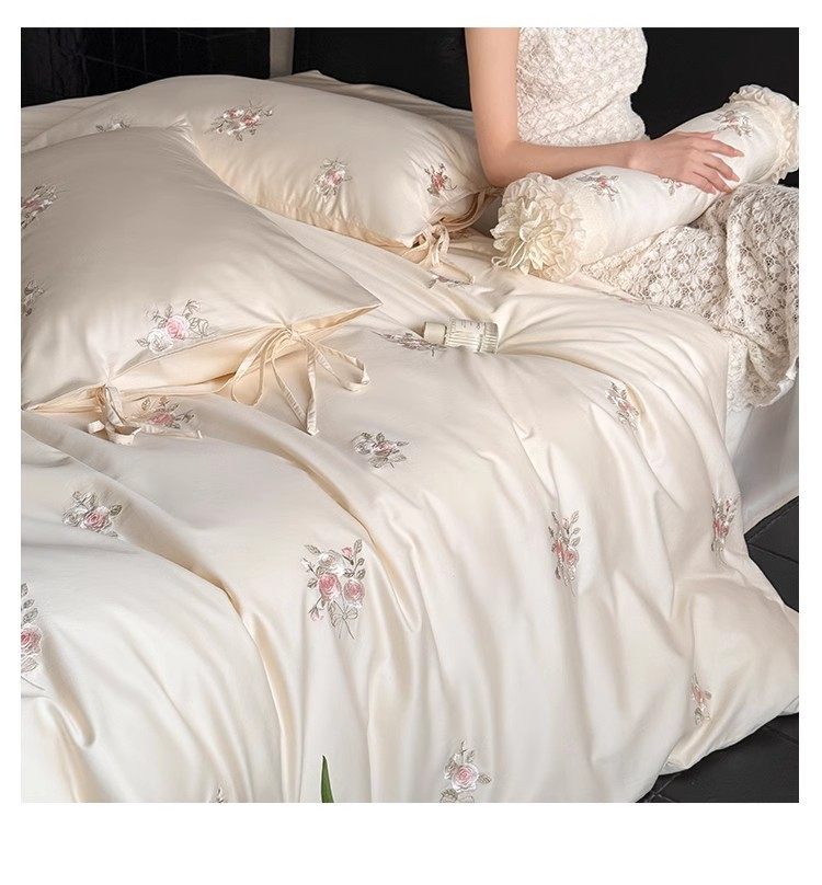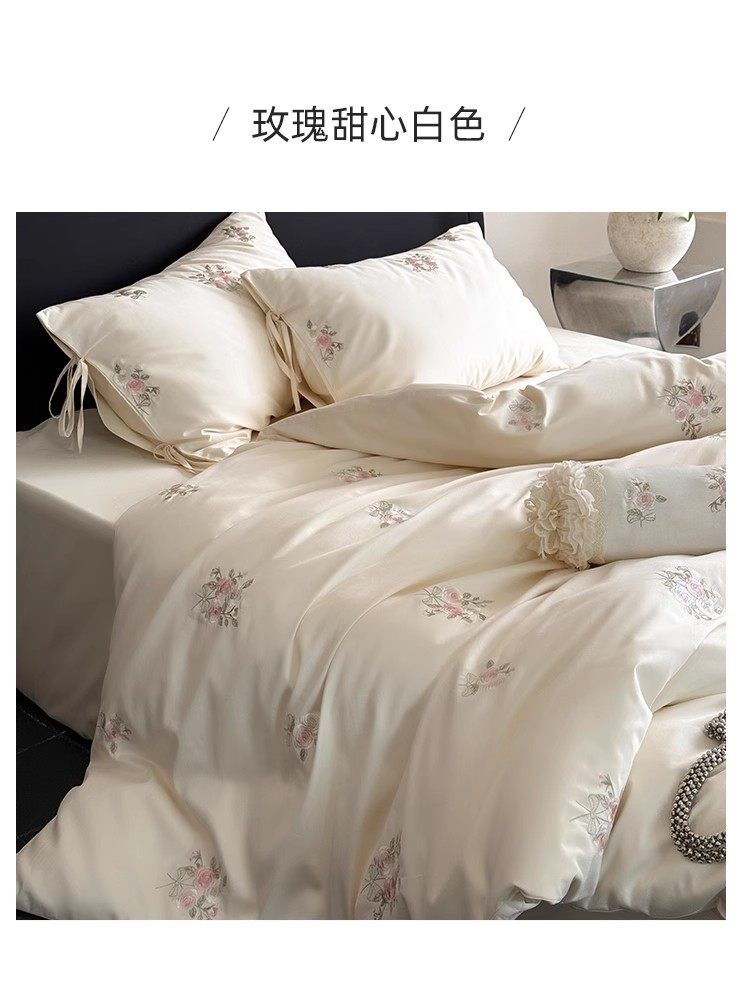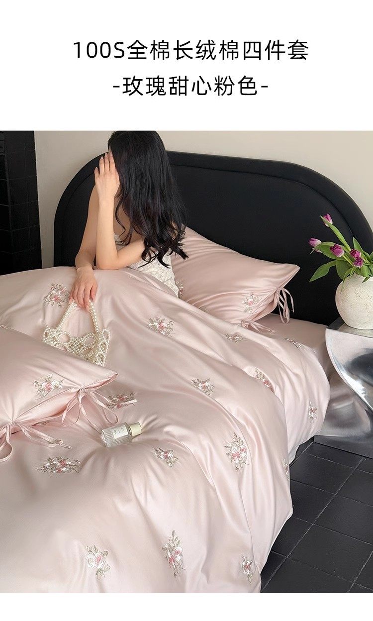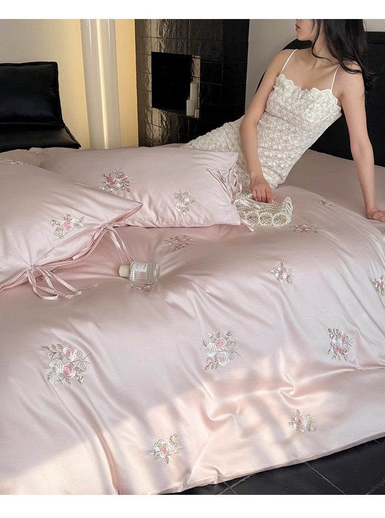 100 Satin Long-staple Cotton Four-piece Princess Style Rose Embroidered Cotton Quilt Cover Bed Sheet Bedding 4