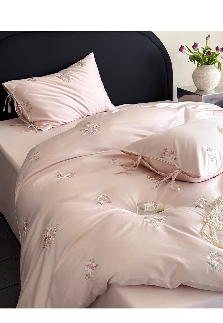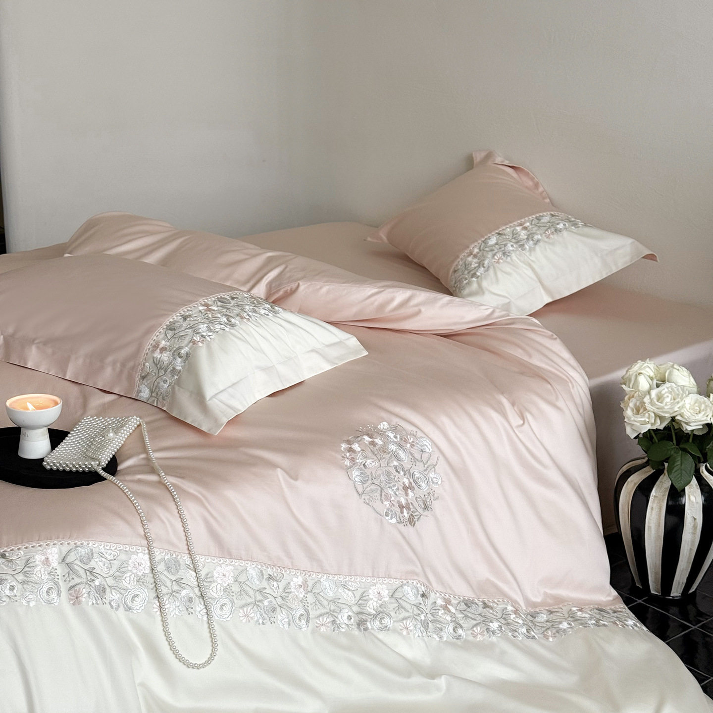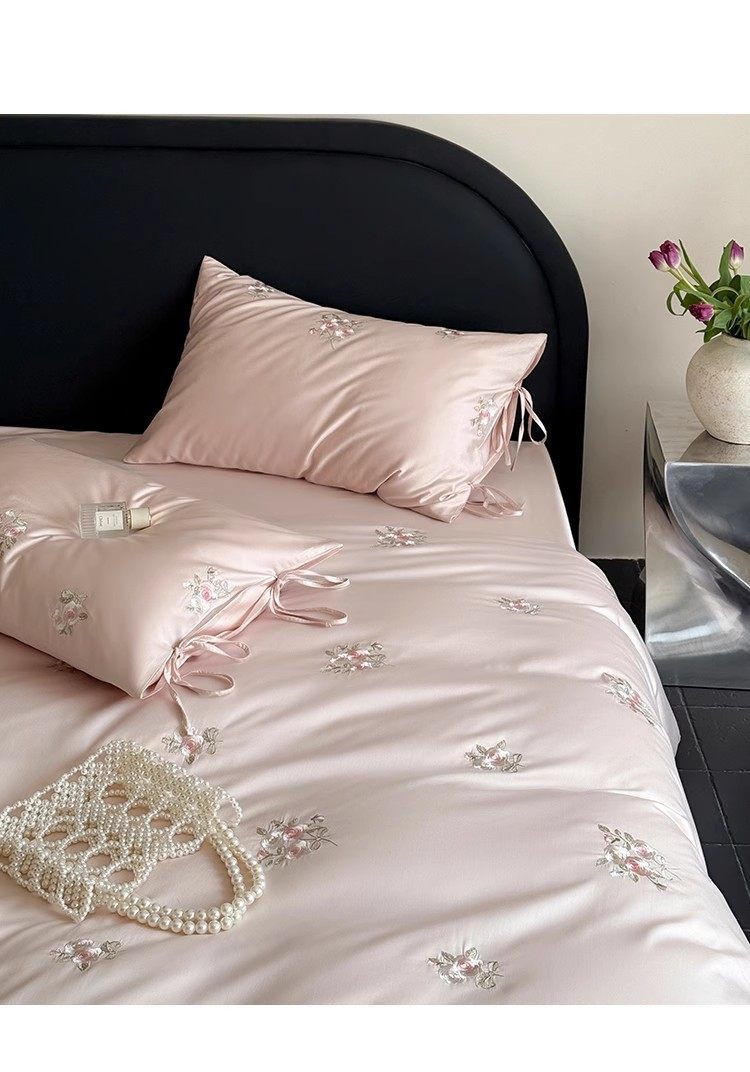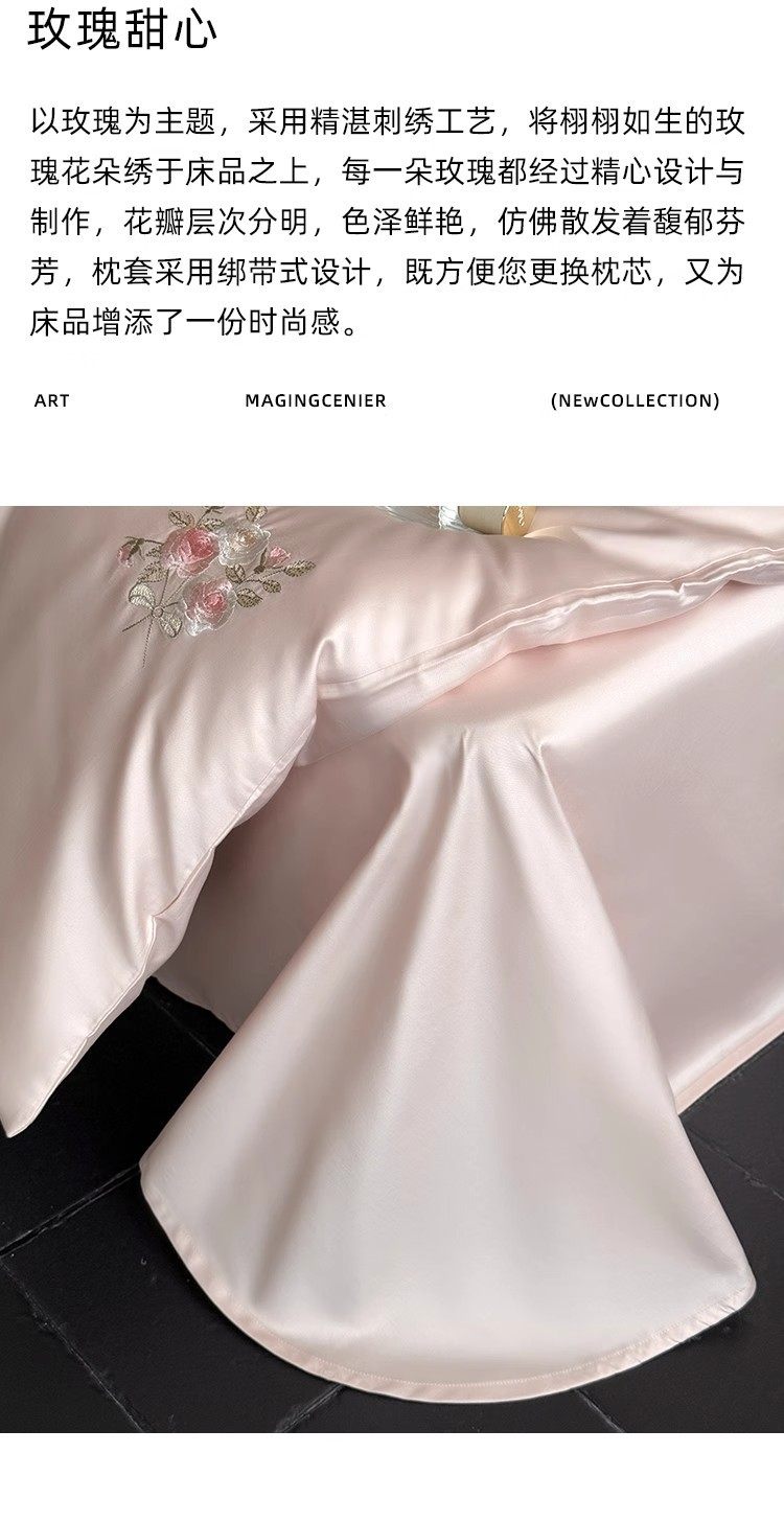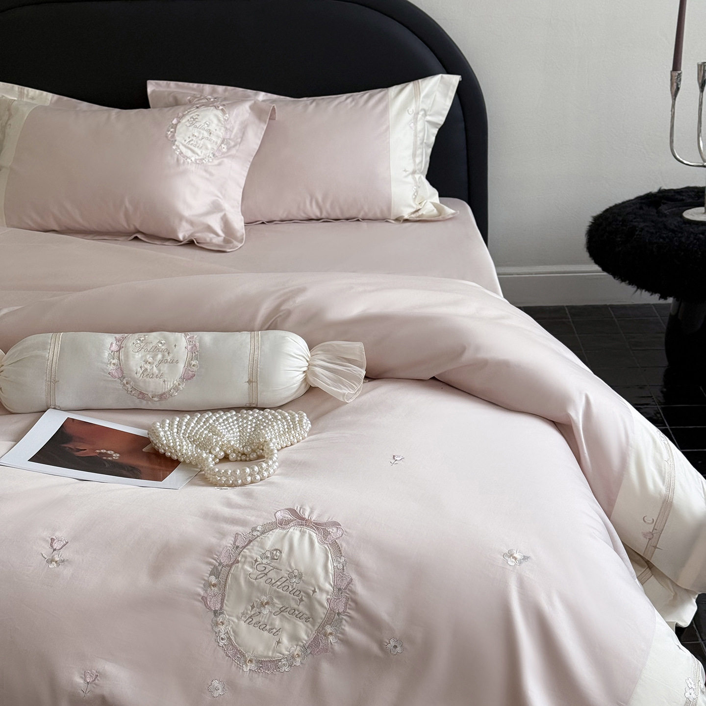 100 Satin Long-staple Cotton Four-piece Princess Style Rose Embroidered Cotton Quilt Cover Bed Sheet Bedding 4