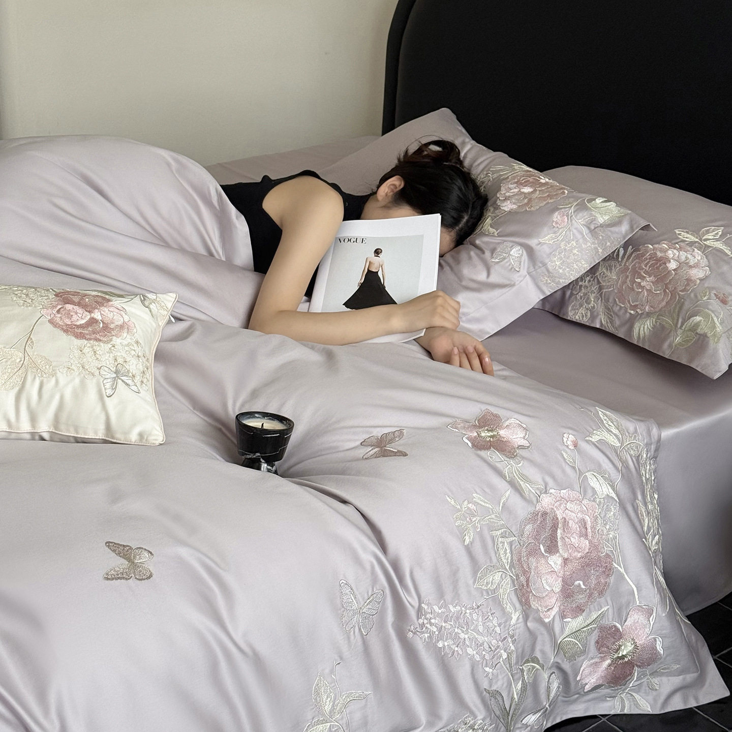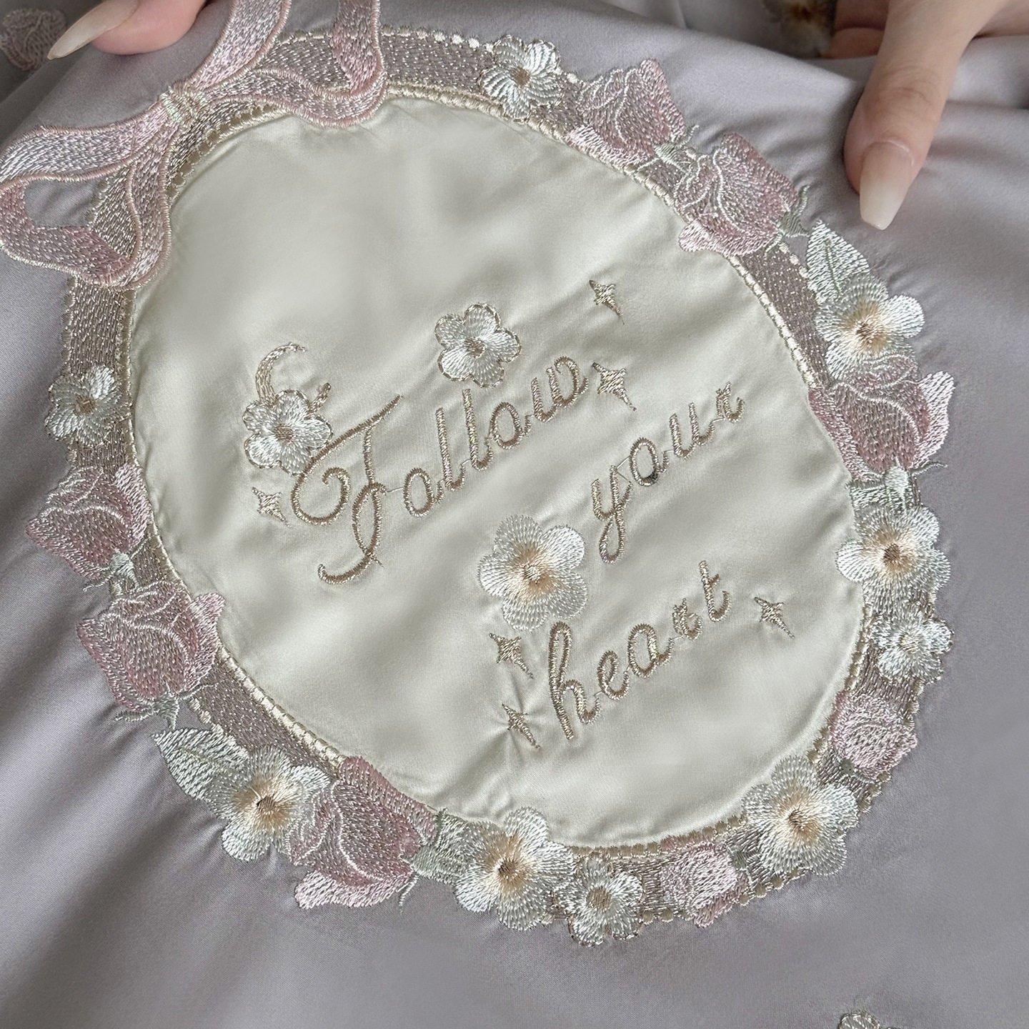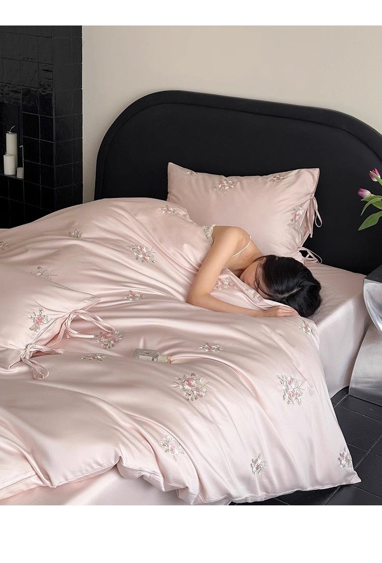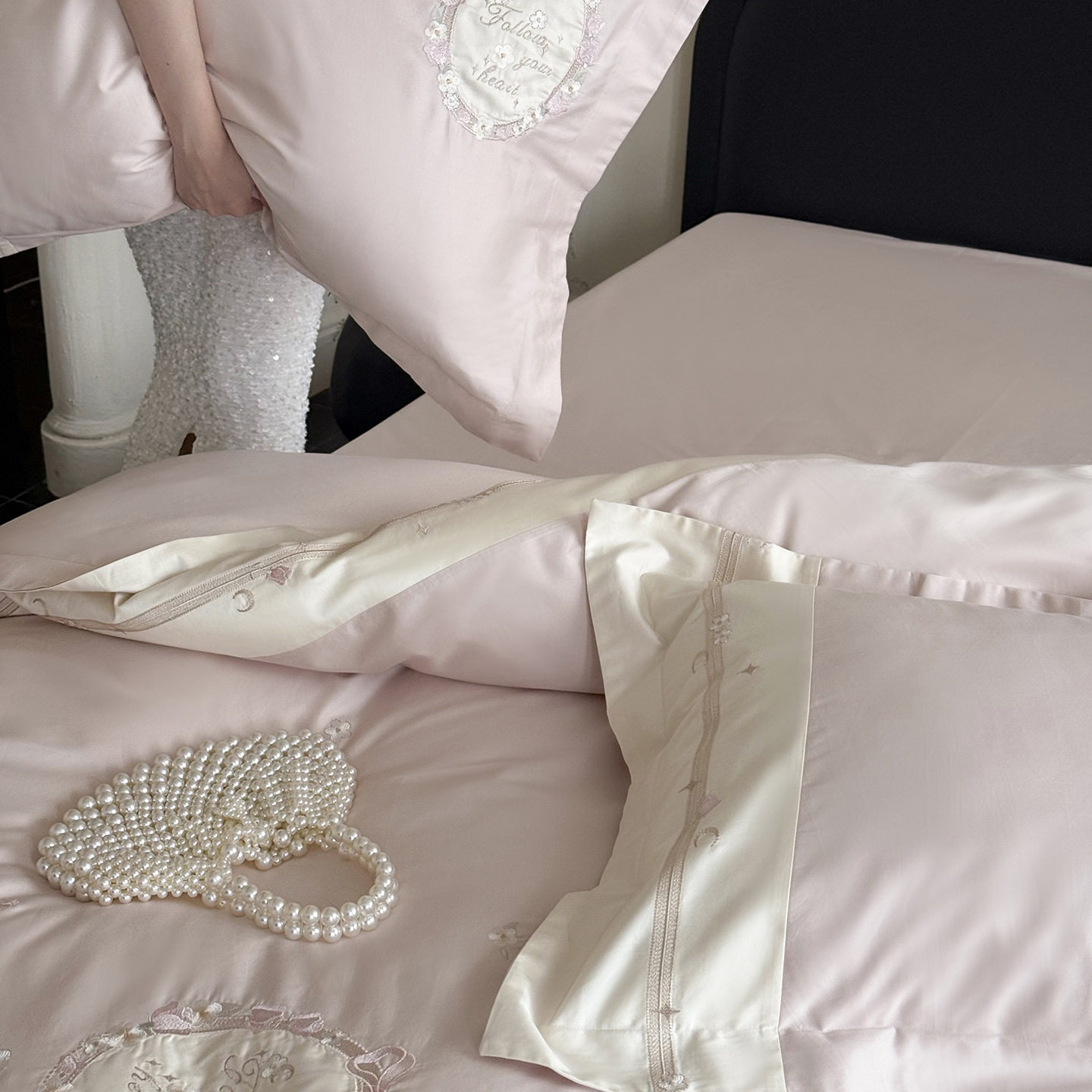 100 Satin Long-staple Cotton Four-piece Princess Style Rose Embroidered Cotton Quilt Cover Bed Sheet Bedding 4