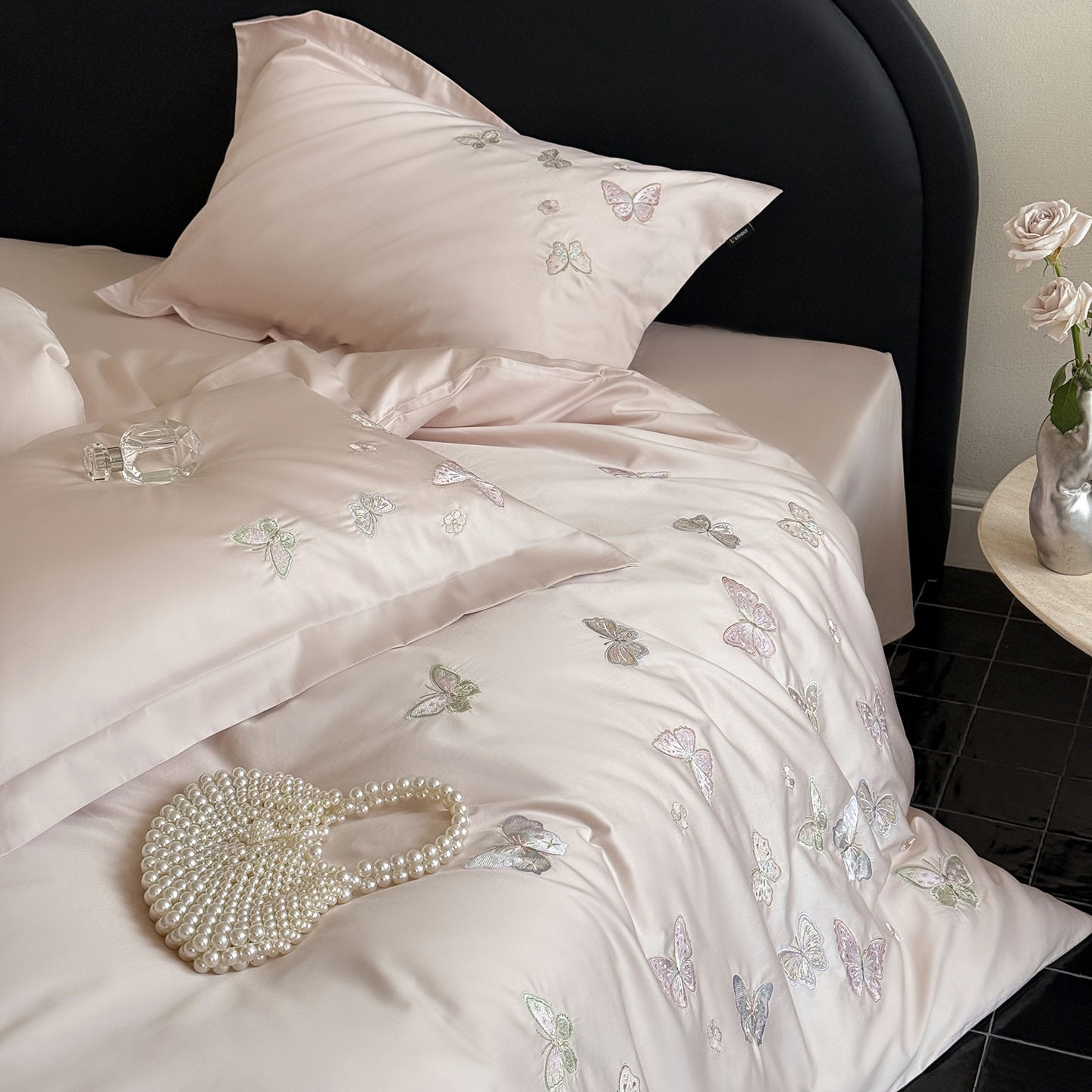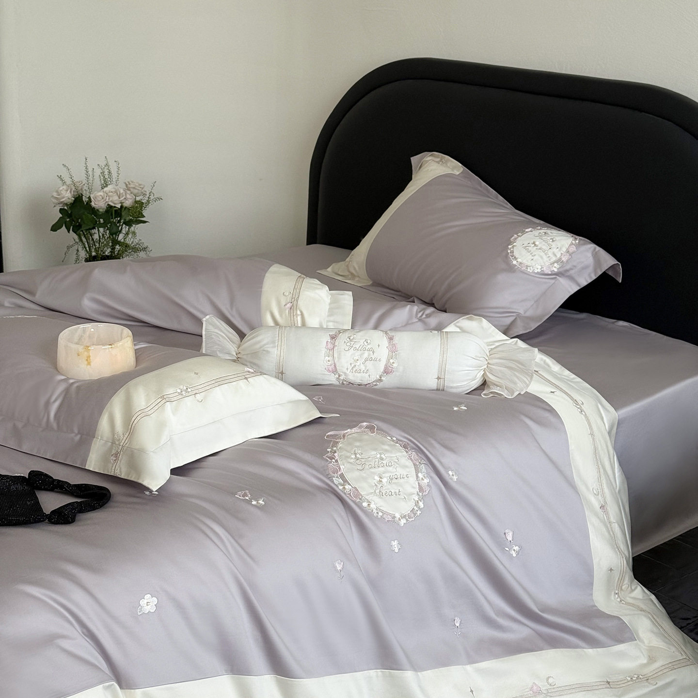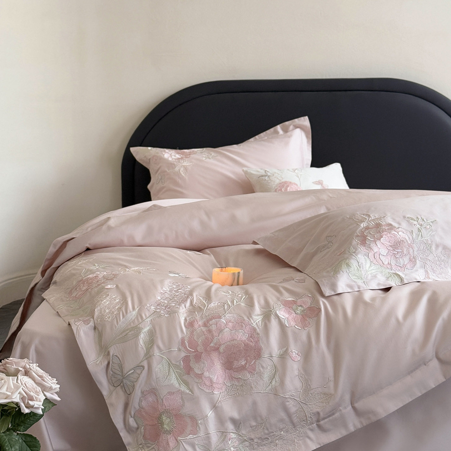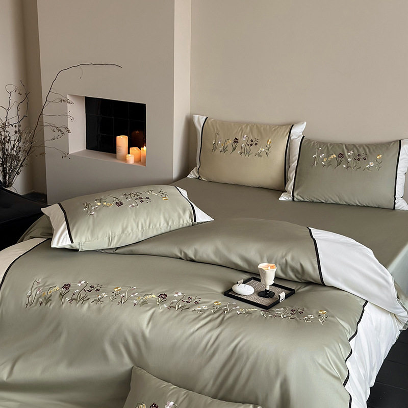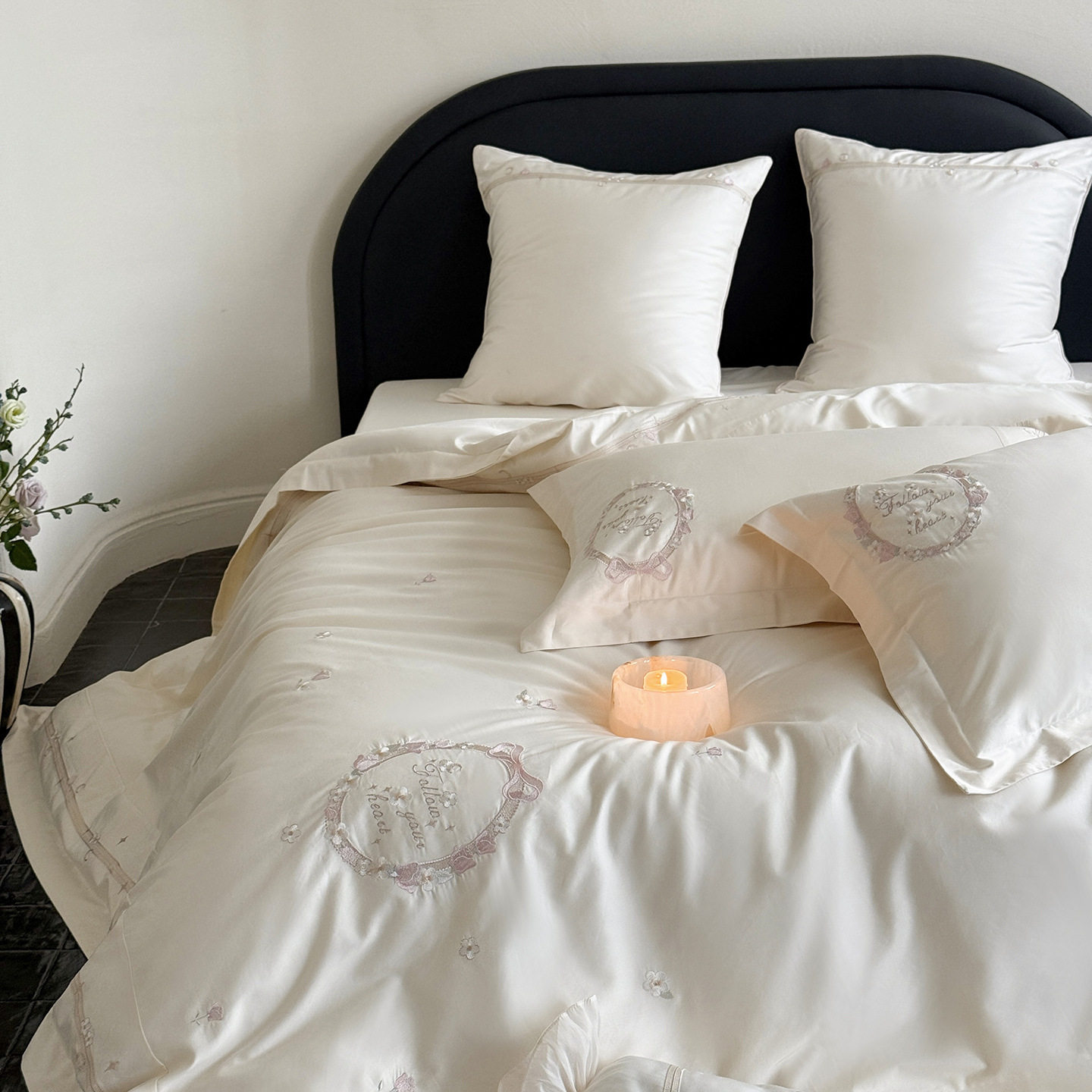 100 Satin Long-staple Cotton Four-piece Princess Style Rose Embroidered Cotton Quilt Cover Bed Sheet Bedding 4