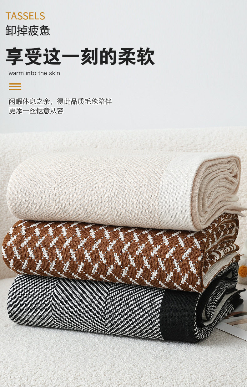 Nordic Simple Style Knitted Summer Nap Air Conditioning Blanket Blanket Bed Tail Towel Blanket New Style Blanket Sofa Blanket