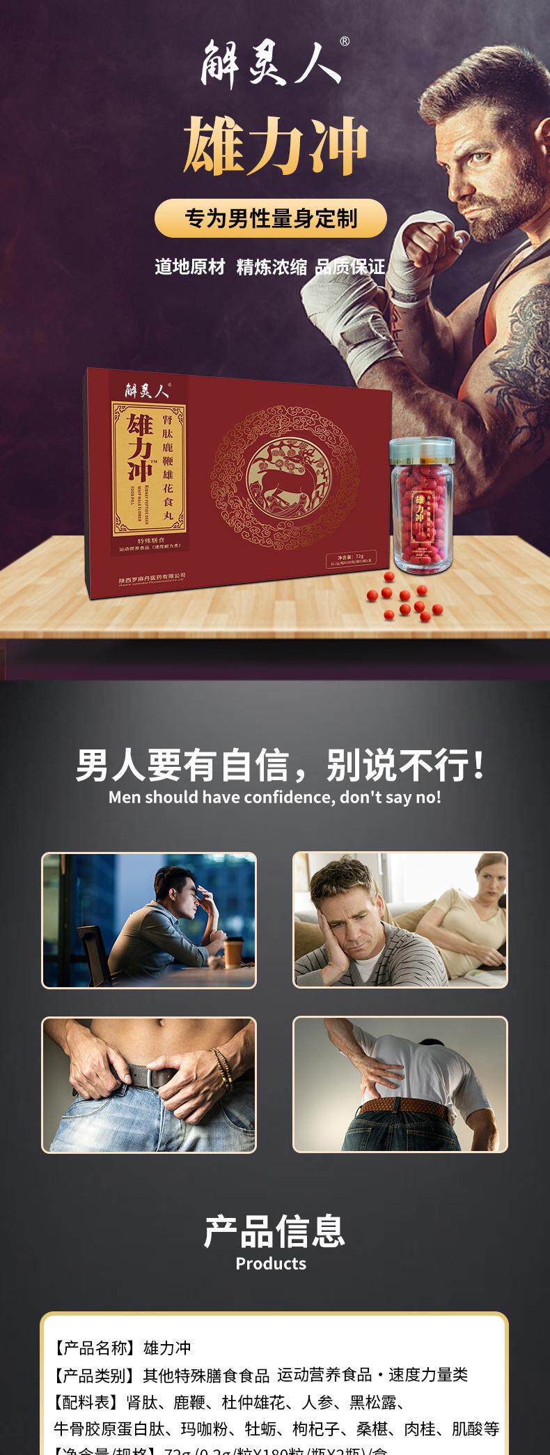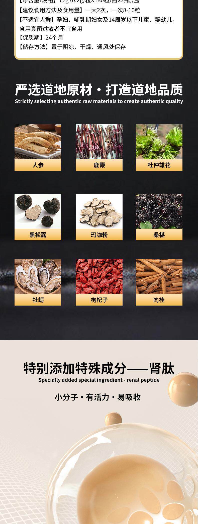 | Main nutritional components | Kidney peptide powder, farmed sika deer penis powder |