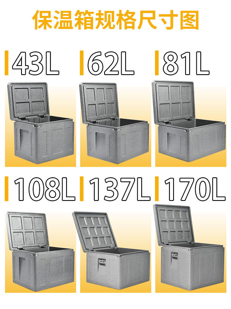 | Specification model | 43l black (bare box); epp,43l black (hinge); epp,43l black (hinge + handle); epp,43l black (hinge + handle + lock); epp,43l black (handle); epp,43l gray (bare box); epp,43l gray (hinge); epp,43l gray (handle); epp,43l gray (hinge + handle); epp,43l gray (hinge + handle + lock); epp,62l black (bare box); epp,62l black (hinge); epp,62l black (handle); epp,62l black (hinge + handle); epp,62l black (hinge + handle + lock); epp,62l gray (bare box); epp,62l gray (handle); epp,62l gray (hinge + handle); epp,62l gray (hinge + handle + lock); epp,81l black (bare box); epp,81l black (hinge); epp,81l black (handle); epp,81l black (hinge + handle); epp,81l black (hinge + handle + lock); epp,81l gray (bare box); epp,81l gray (hinge); epp,81l gray (handle); epp,81l gray (hinge + handle); epp,81l gray (hinge + handle + lock); epp,108l black (bare box); epp,108l black (hinge); epp,108l black (handle); epp,108l black (hinge + handle); epp,108l black (hinge + handle + lock); epp,108l gray (bare box); epp,108l gray (hinge); epp,108l gray (handle); epp,108l gray (hinge + handle); epp,108l gray (hinge + handle + lock); epp,137l black (hinge + handle); epp,137l black (hinge + handle + lock); epp,137l gray (hinge + handle); epp,137l gray (hinge + handle + lock); epp,170l black (hinge + handle); epp,170l black (hinge + handle + lock); epp,170l gray (hinge + handle); epp,170l gray (hinge + handle + lock); epp |