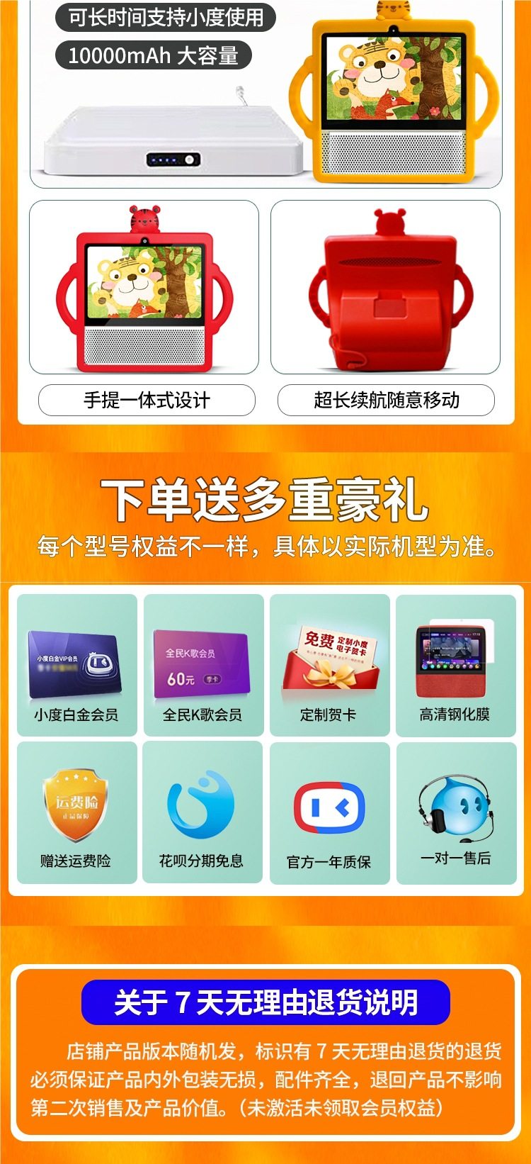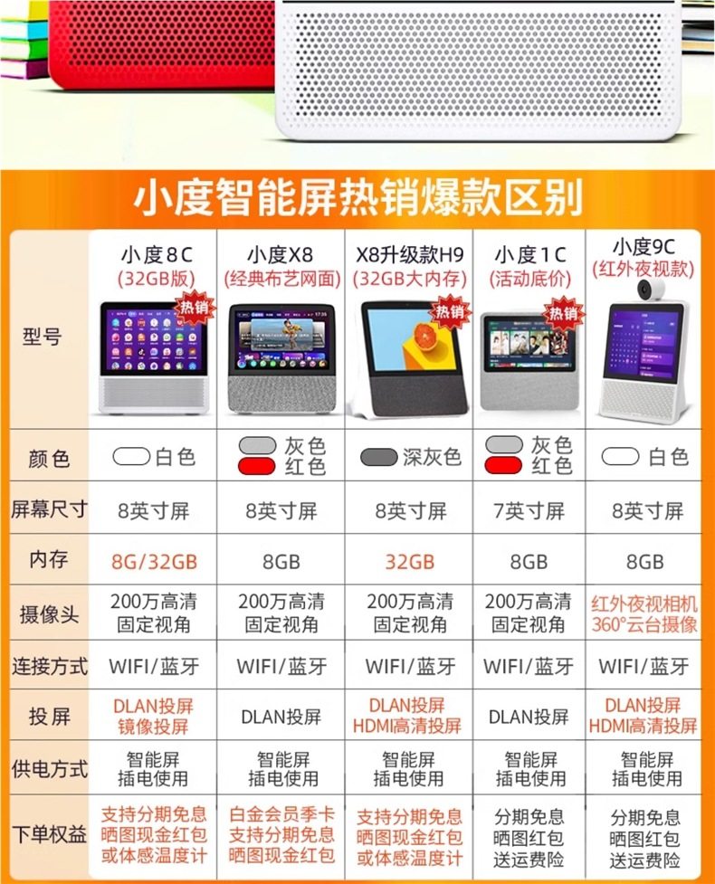 | Colour | ❤[1c gray standard]★New fabric mesh 7inch screens,❤[1c red standard]★New fabric mesh 7inch screens,❤[1s white standard]★Upgraded version 32g memory hd touch screen,❤[1s red standard configuration]★Upgraded version 32g memory hd touch screen,✅[8c purchased by thousands of people]★New arrival 8inch hd audio and video touch screen,✅[8c set]★8c+ anti-fouling and anti-fall silicone sleeve available in two colors,✅[8c set]★8c+ protective case + power bank 10k mah,✅[8c set]★8c+ protective case + power bank 15k mah,✅[8c set]★8c+ xiaodu bluetooth wireless karaoke microphone,✅[8c public version]★Official public version 8inch hd large screen,✅[8c upgraded version]★8c large memory 32gb new high-definition audio and video,❤[x8 upgraded model h9 comes standard]★32g memory 8inch hd large touch screen,❤[x8 upgraded h9 set]★32g memory h9+ silicone protective case,✅[x8 gray standard configuration]★Free platinum membership for 3 months 8inch touch the big screen,✅[x8 red standard configuration]★Free platinum membership for 3 months 8inch touch the big screen,✅[x8 set]★X8+ cartoon dinosaur portable silicone case available in two colors,✅[x8 set]★X8 gray + silicone case + 10k mah power bank in one,✅[x8 set]★X8 red + silicone case + 10k mah power bank in one,❤[9c standard configuration]★8inch new 360°Ptz hd camera smart screen,❤[9c set]★Infrared high-definition night vision model 9c+hdmi projection hd cable,❤[x9pro comes standard]★8inch new arrivalai smart screen comes with 3-month xiaodu platinum membership,✅[x10 generation standard configuration]★10inch audio and video super large screen comes with 6-month xiaodu platinum membership,✅[x10 second generation champagne gold]★10inch audio and video super large screen comes with 6-month xiaodu platinum membership |