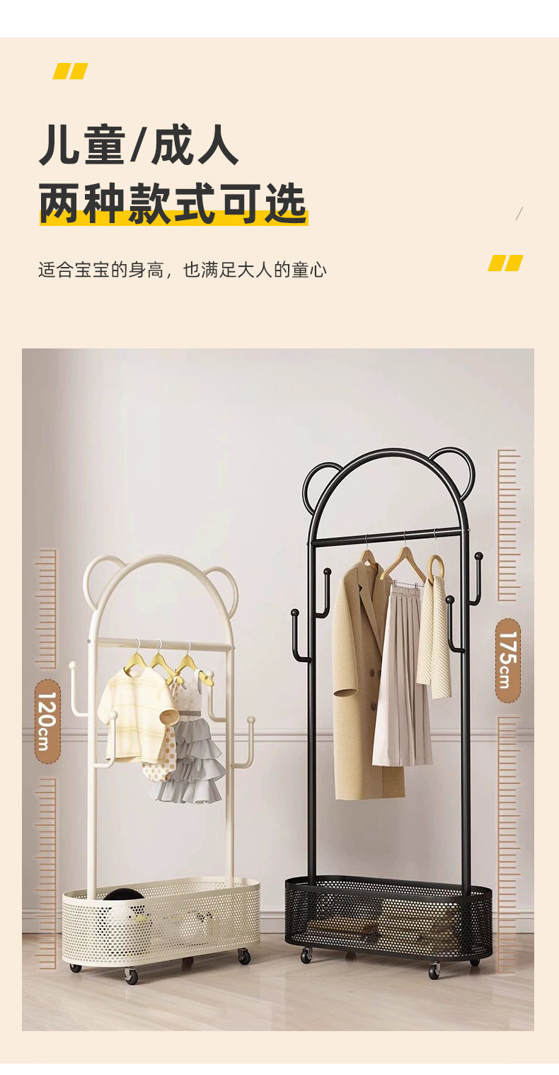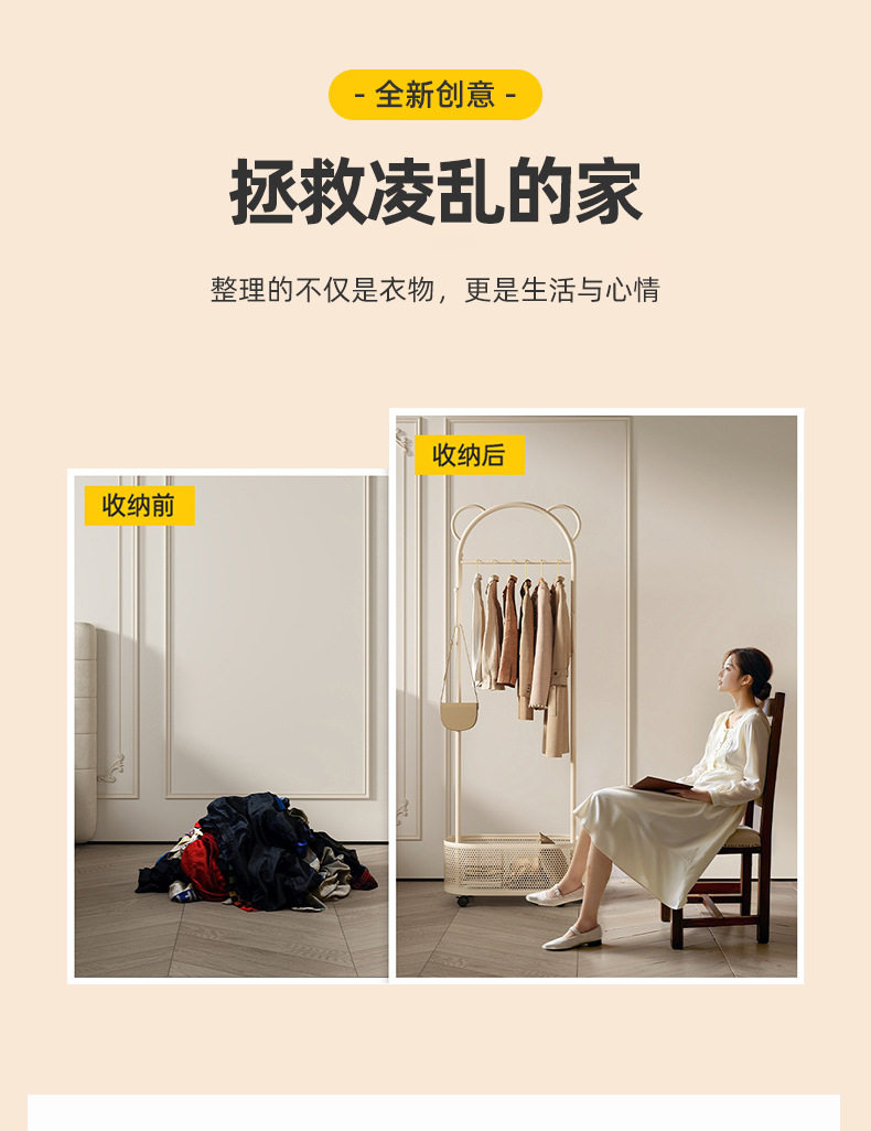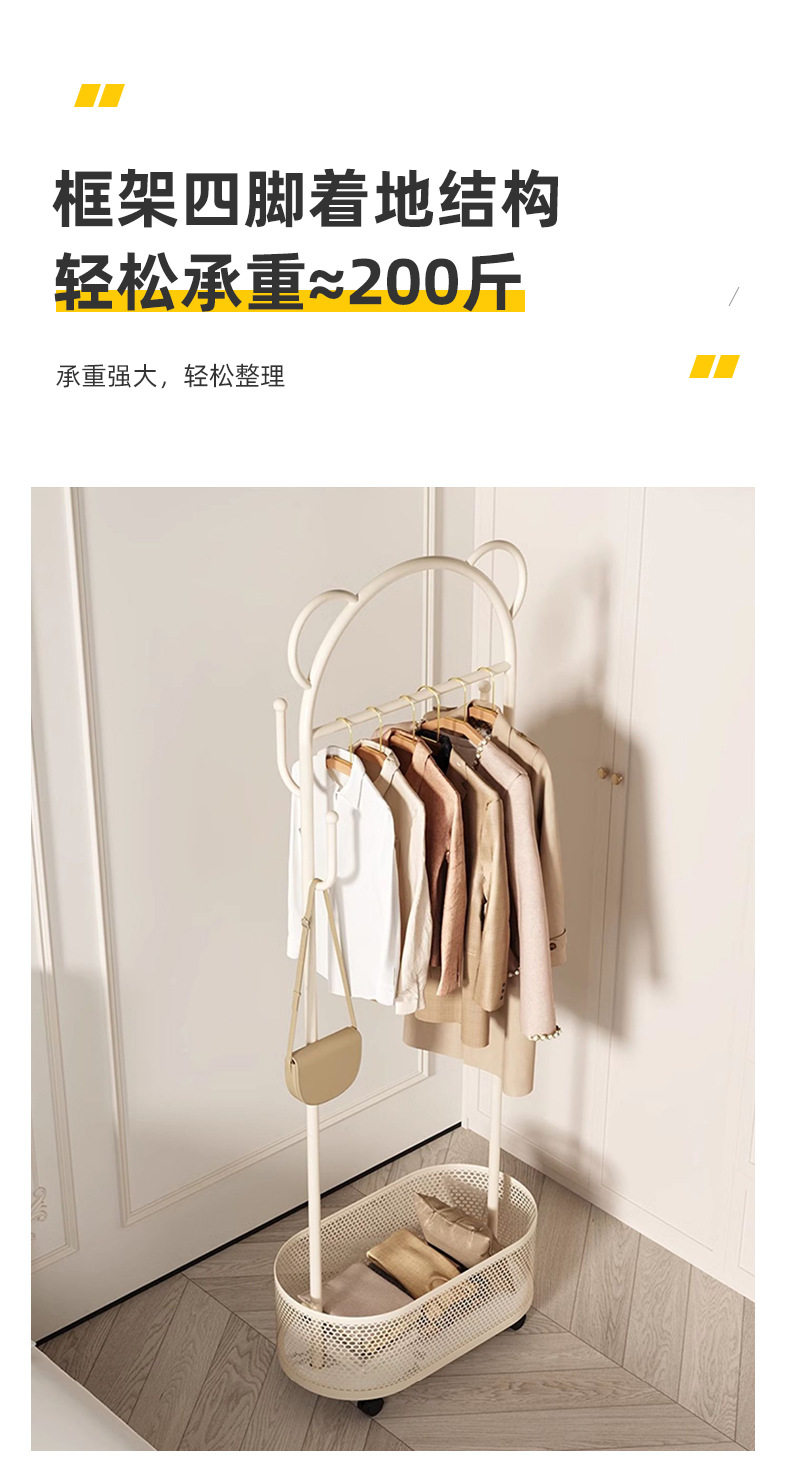 Floor Hanger Movable Bedroom Dirty Clothes Basket Hanger Cream Style Small Apartment Entrance Bedroom Internet Celebrant Coat Rack