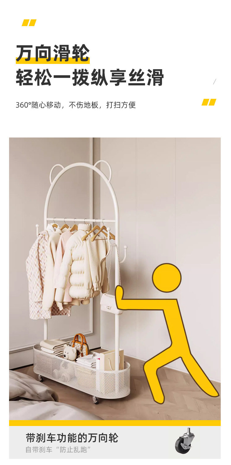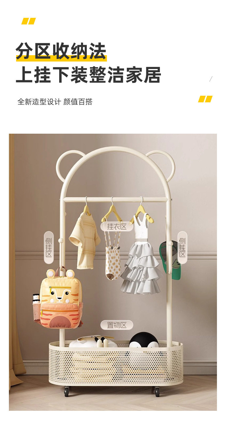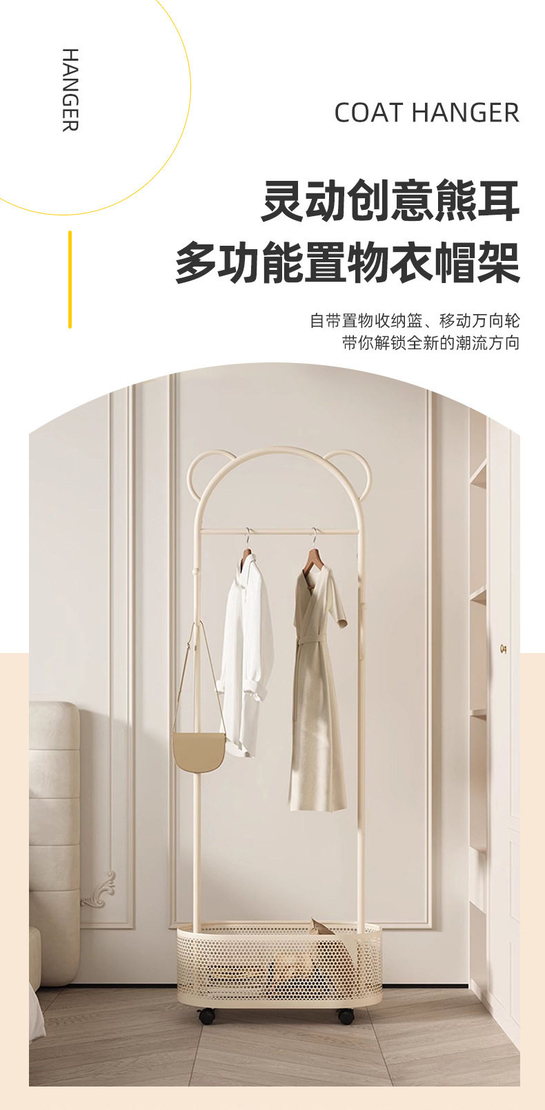 Floor Hanger Movable Bedroom Dirty Clothes Basket Hanger Cream Style Small Apartment Entrance Bedroom Internet Celebrant Coat Rack