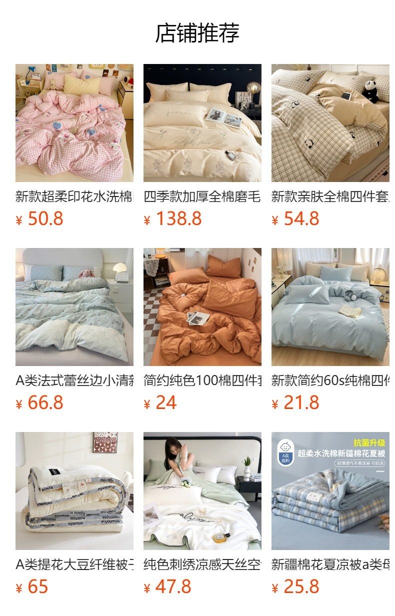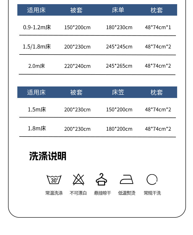 Dimensions 1.2m [sheet style] three-piece set [quilt cover 150*200cm],1.5m [sheet style] four-piece set [quilt cover 200*230cm],1.8m [sheet style] four-piece set [quilt cover 200*230cm],2.0m [sheet style] four-piece set [quilt cover 220*240cm],1.5m [fitted sheet] four-piece set [quilt cover 200*230cm],1.8m [fitted sheet] four-piece set [quilt cover 200*230cm]
