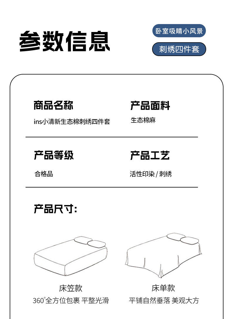 Item number Eco-friendly cotton and linen embroidered four-piece set