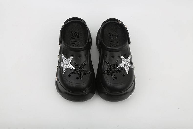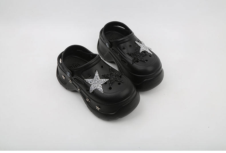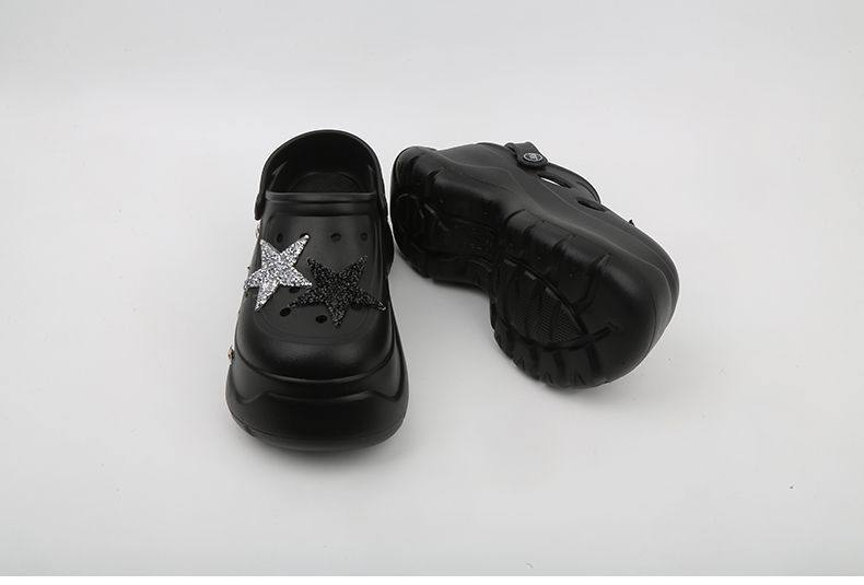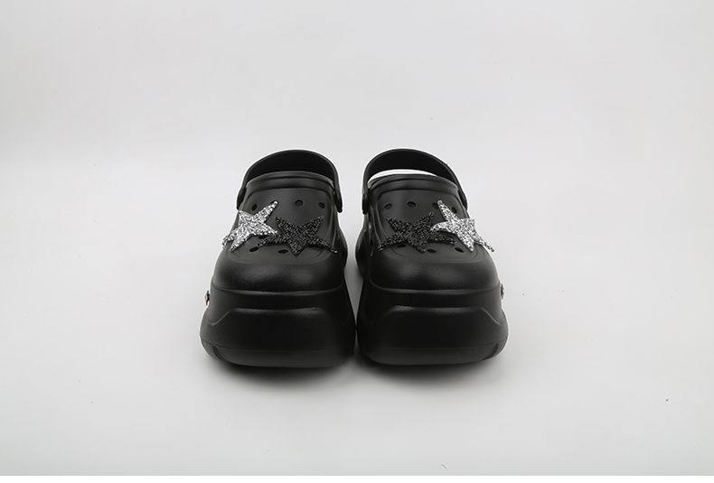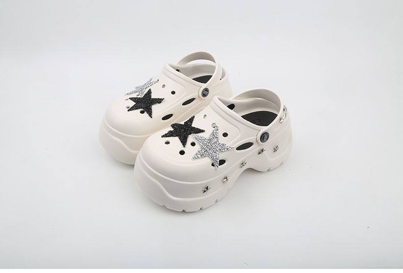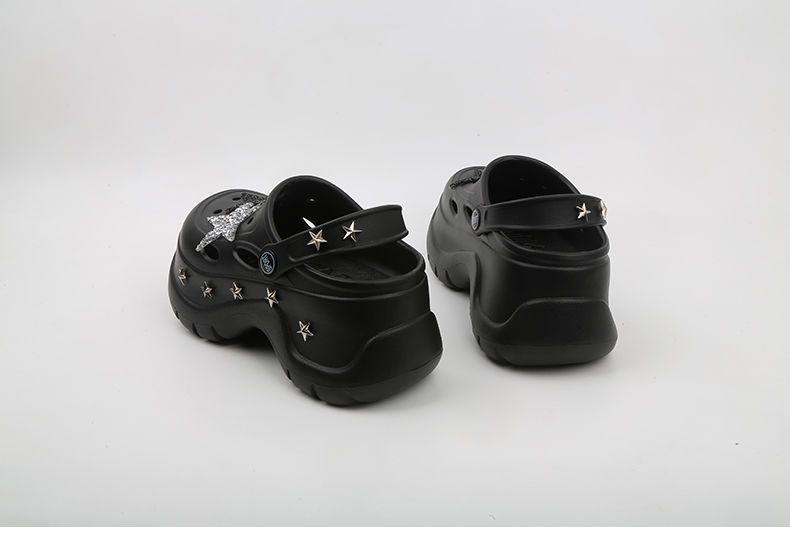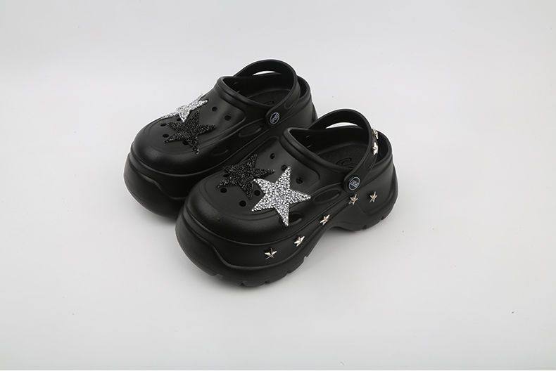 Thick Bottom Cartoon Hole Shoes Women's Summer 2024 New Style Outer Wear Non-slip Elevated Bottom Beach Baotou Half Slippers for Women