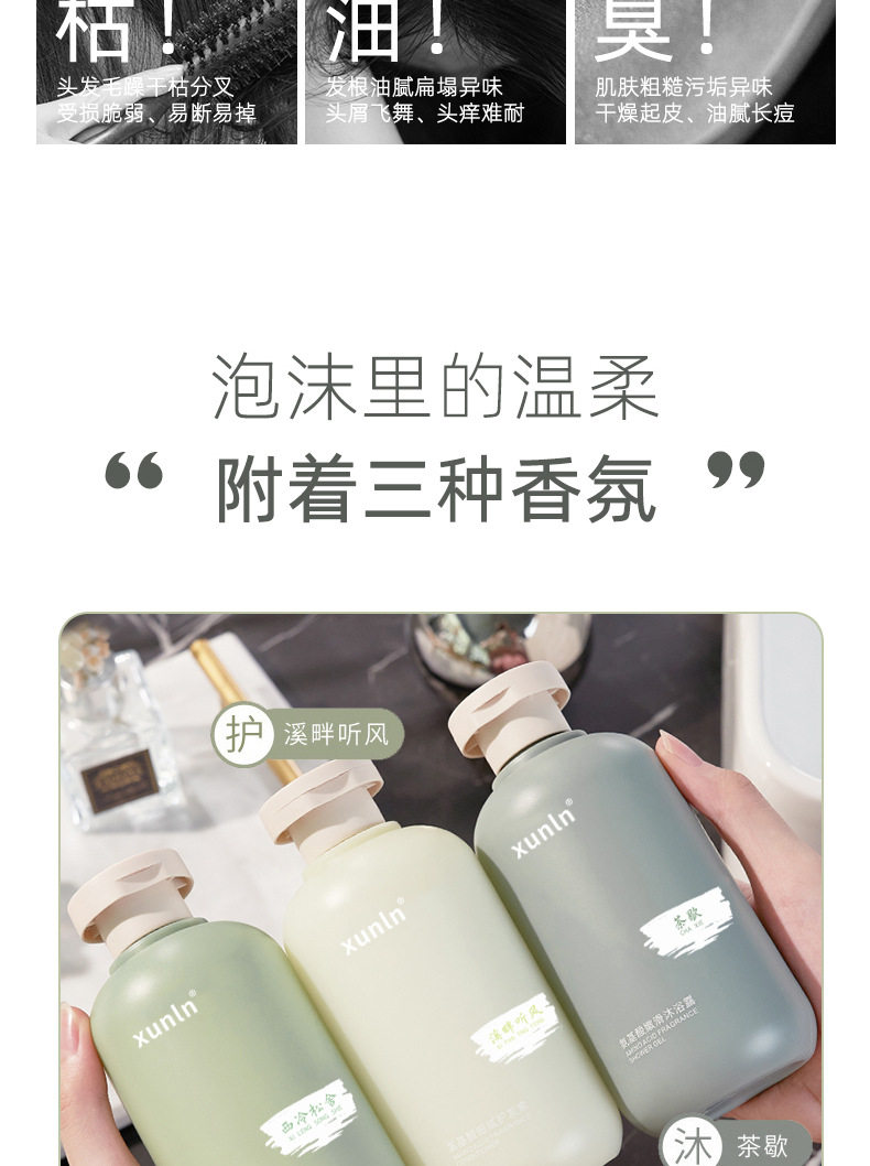 | Sort by color | Xunln amino acid fragrance shampoo,Xunln amino acid smoothing shower gel,Xunln amino acid delicate conditioner |