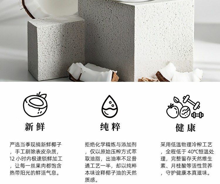 Cold Pressed 100% Pure Coconut Oil Initial Pressure Edible Oil Hair Protection Mouthwash Hainan Baking Ketogenic Coconut Oil Food Base Oil