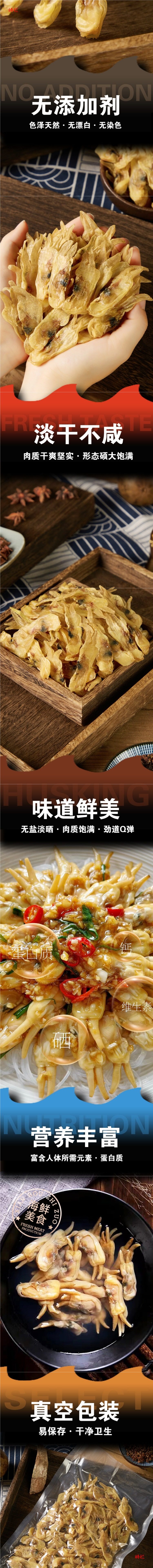 | Packaging specifications | Ripe and sun-dried 250g double-headed dried cockles/90% dried,Ripe and sun-dried 250g double-headed dried cockles/90% dried [small belly],Ripe and sun-dried 500g double-headed dried cockles/90% dried [small belly],250g double-headed dried cockles/dry feet,Raw and sun-dried 250g/foot dry【8-10cm extra large size】,Ripe and sun-dried 500g double-headed dried cockles/90% dried |
