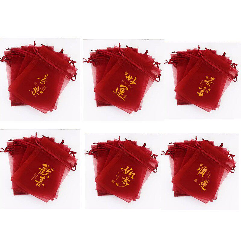| Color | Burgundy [gauze bag],Golden national style-changle [wine red sha],Golden national style-rich [burgundy yarn],Golden national style-happiness [wine red sha],Wedding random mix [burgundy yarn],Golden national style-ruyi [wine red gauze],Golden national style-good luck [wine red gauze],Golden national style-shunshui [wine red sha],Golden chinese style randomly mixed [burgundy yarn],Golden blessing character [burgundy gauze],Gold list title-lucky [wine red sha],Title on the gold list - must win [wine red sha],Golden word "囍" printed in the center, wine red gauze,Calligraphy style-fu [burgundy gauze],Perfect blessing [wine red yarn],Golden lotus [wine red sha],Wealth from all directions [wine red yarn],Round blessing [burgundy yarn],Golden buddha character [wine red sha],Randomly mixed with word blessings [burgundy yarn],The exam is randomly mixed [burgundy yarn],Lucky random mix [burgundy yarn],Full moon randomly mixed [burgundy yarn] |