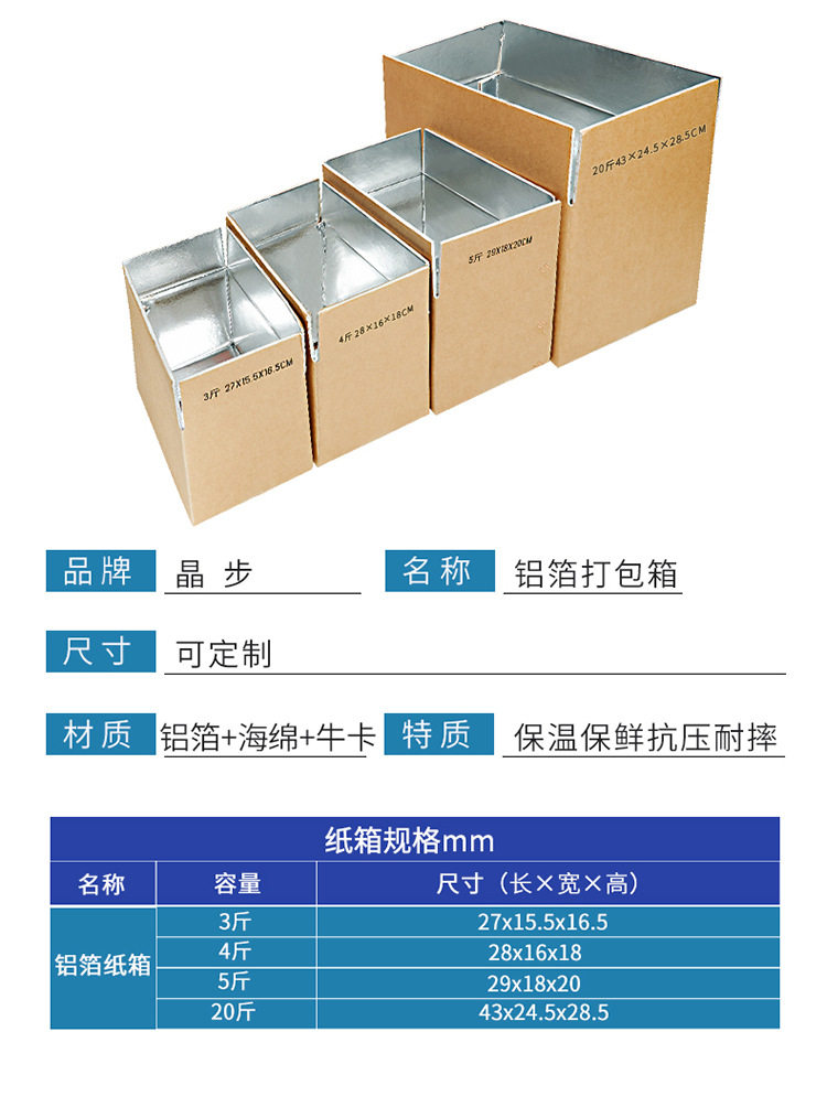 | 1 | Aluminum foil box food express preservation and insulation carton fruit and vegetable seafood cold chain logistics transportation tin foil insulation box |