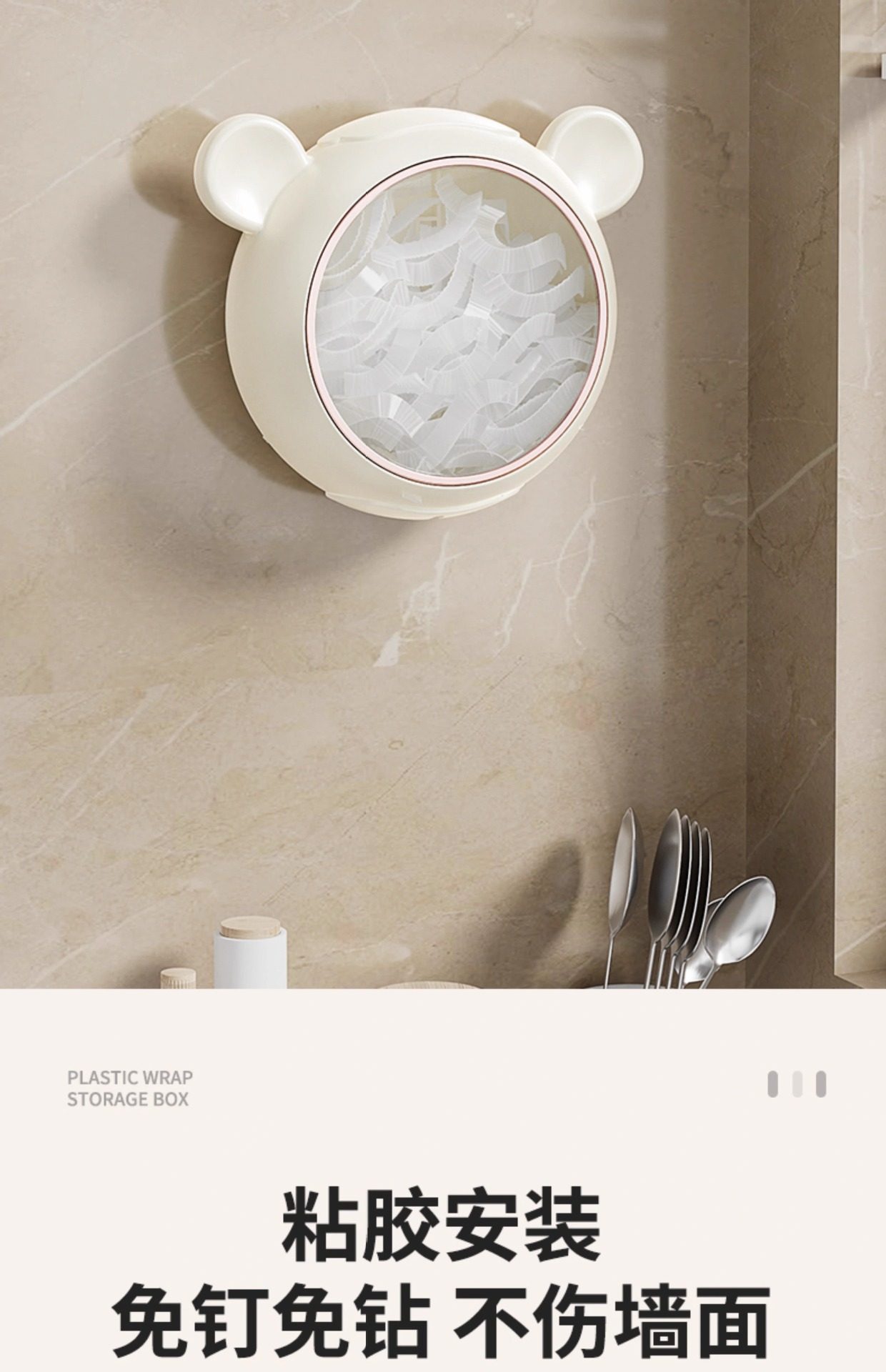 Suction Cup Plastic Wrap Storage Box Refrigerator Food Preservation Cover Wall Hanging Special Disposable Plastic Bag Storage Box