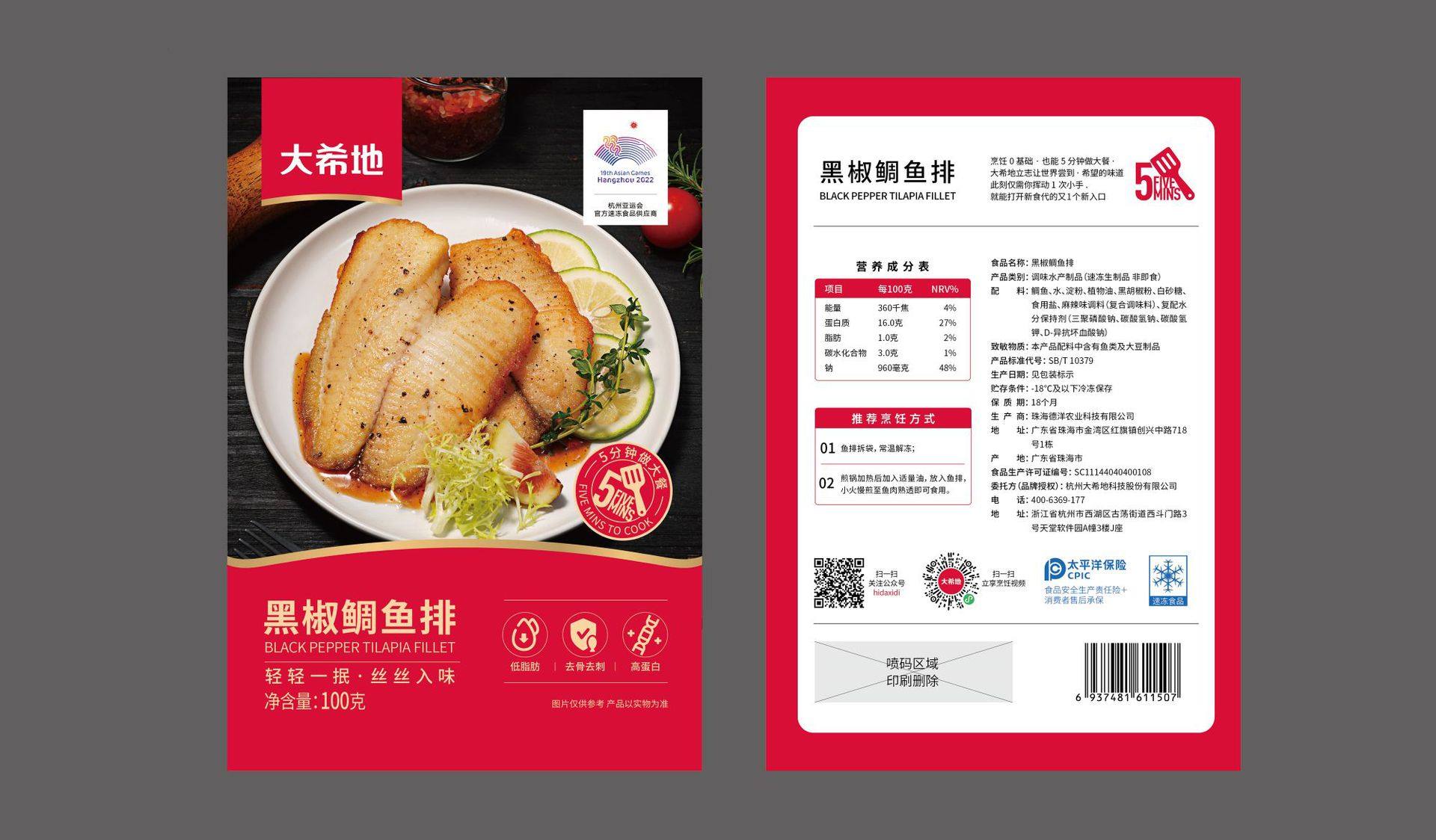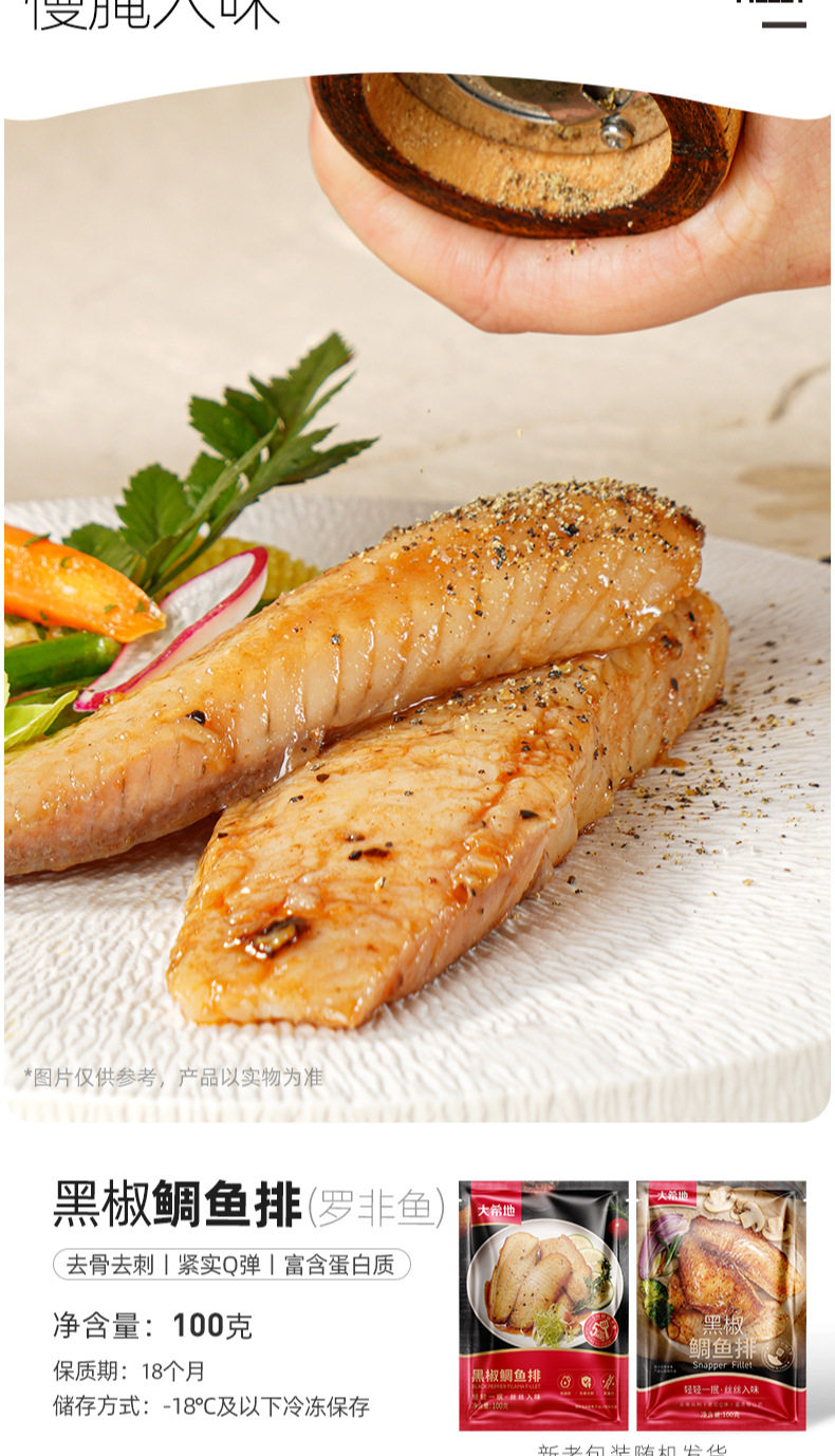 [Daxidi] Black Pepper Snapper Steak, Garlic Fish Steak, Boneless and Spineless Marinated Tilapia Frozen Semi-Finished Ingredients