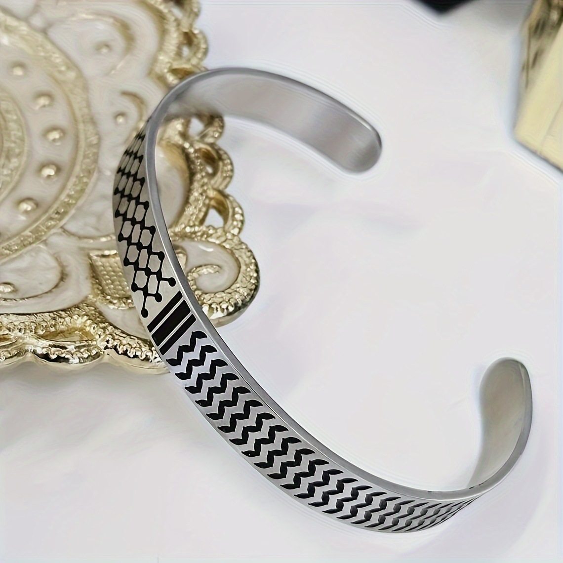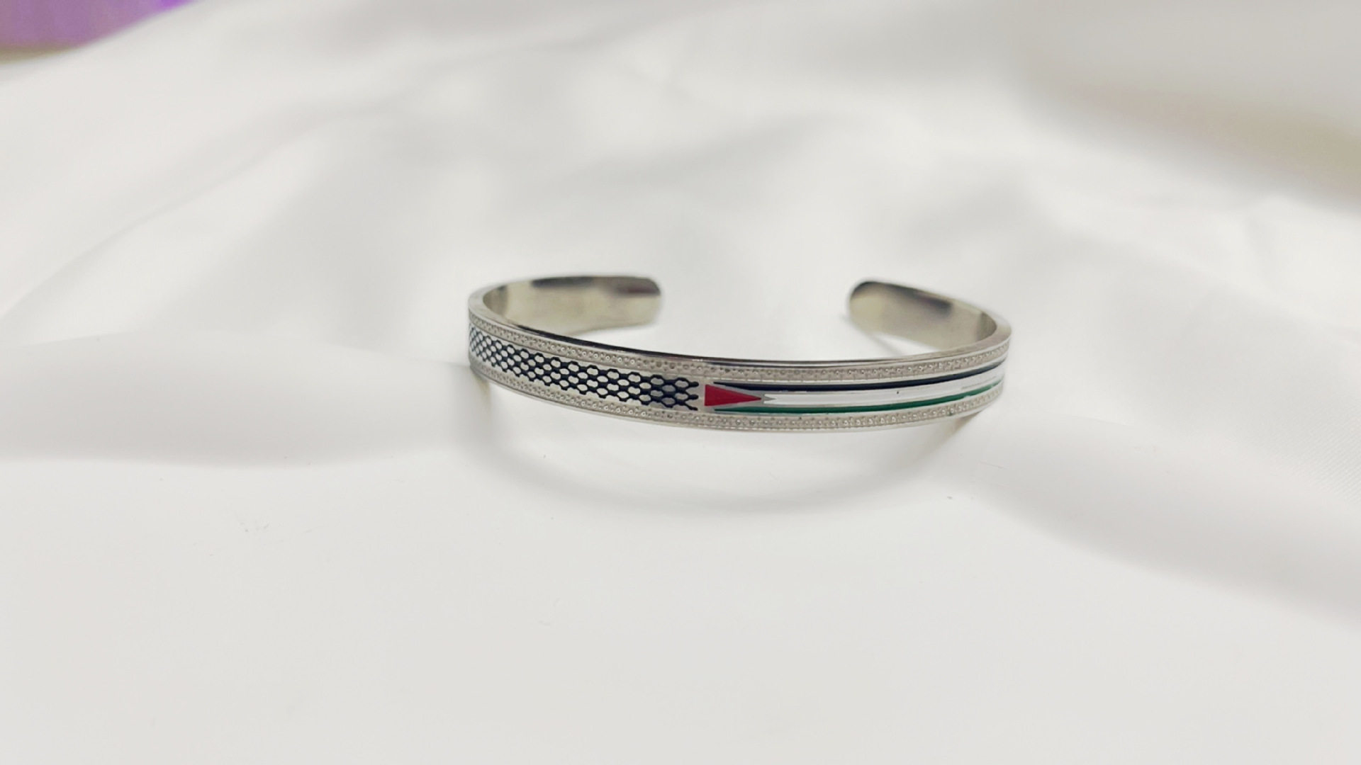 Amazon Hot Cross-border Glue Dropping Stainless Steel Scarf Flag Map Black Opening Bracelet European and American Contact