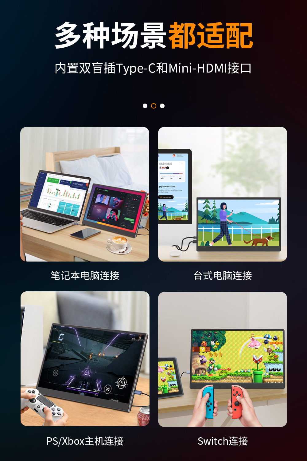 Cross-Border Hot Selling 15.6inch Hd Portable Display One-Line Direct Connection Switch Computer Screen Projection Extension