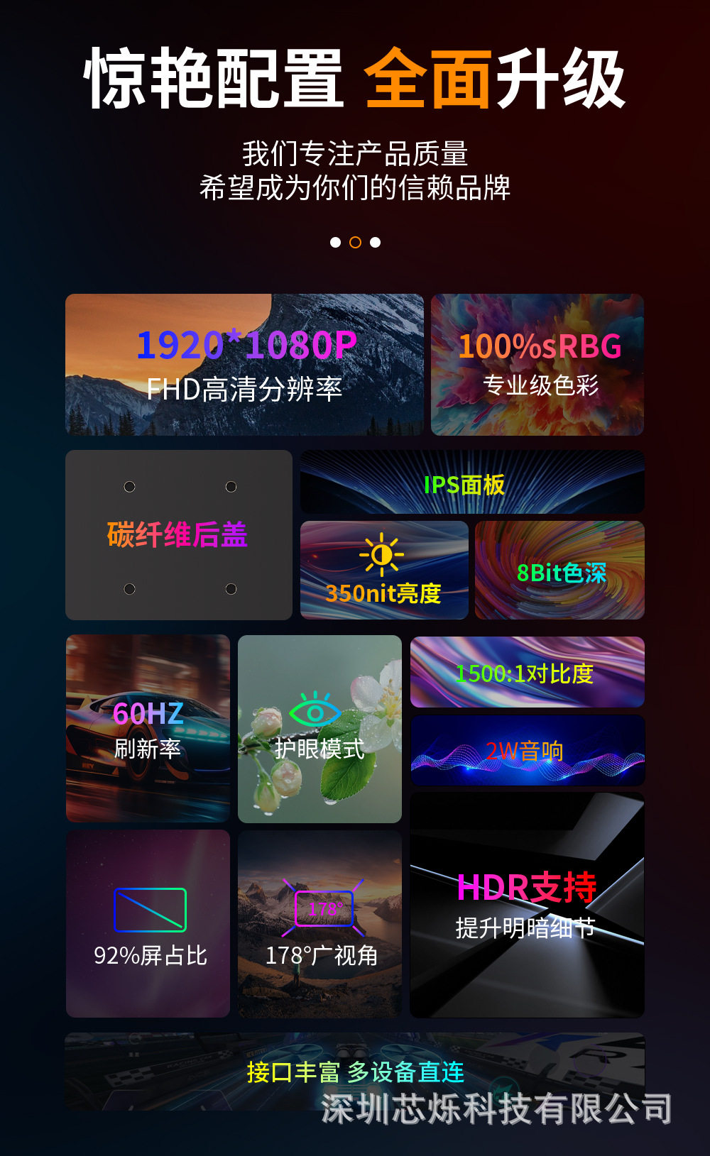 | Size | 15.6inch 1920*1080-60hz bracket model f156p02-,13.3inch 1920*1080-60hz oled leather case model v133f1,13.3inch 2560*1600-60hz leather case model m133q1,14.1inch 1920*1200-60hz bracket model f140p2,14.1inch 1920*1200-60hz leather case model v140f1,14.1inch 2560*1440-60hz leather case model m140q1,15.6inch 1920*1080-60hz leather case model m156f04,15.6inch 1920*1080-60hz leather case model v156f1,15.6inch 1920*1080-60hz leather case model f156p1,15.6inch 3840*2160-60hz leather case model m156u01,15.6inch 1920*1080-60hz leather case model v156f04,15.6inch 1920*1080-60hz bracket model v156f02,15.6inch 1920*1080-60hz touch leather case model f156p04,16.1inch 2560*1600-60hz bracket model f160q1,17.3inch 1920*1080-144hz leather case model m173f1,18.5inch 1920*1080-60hz leather case model v185f1 |