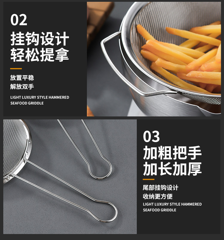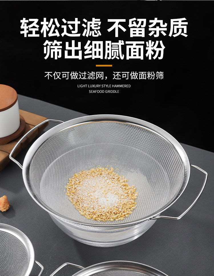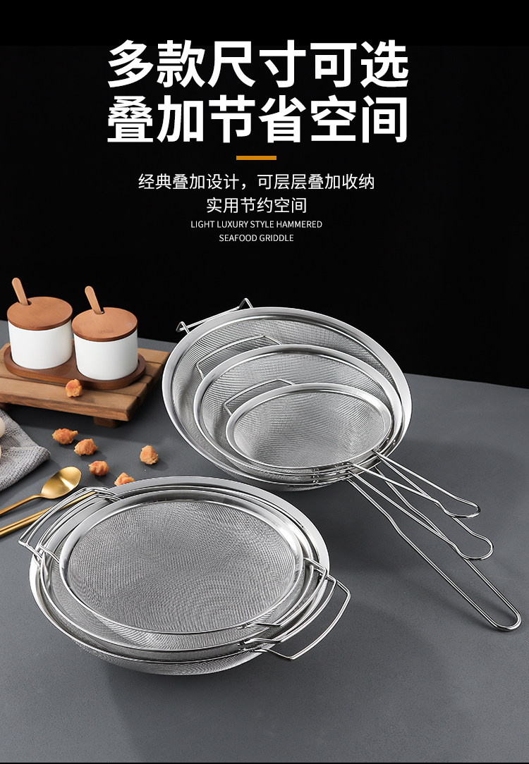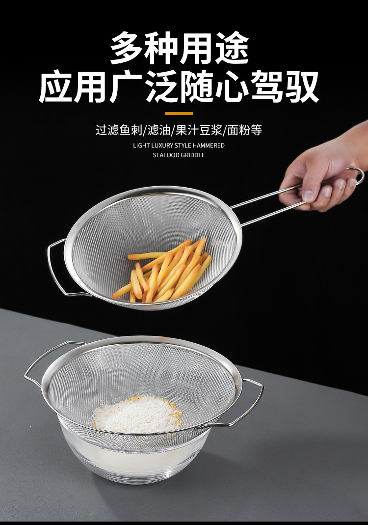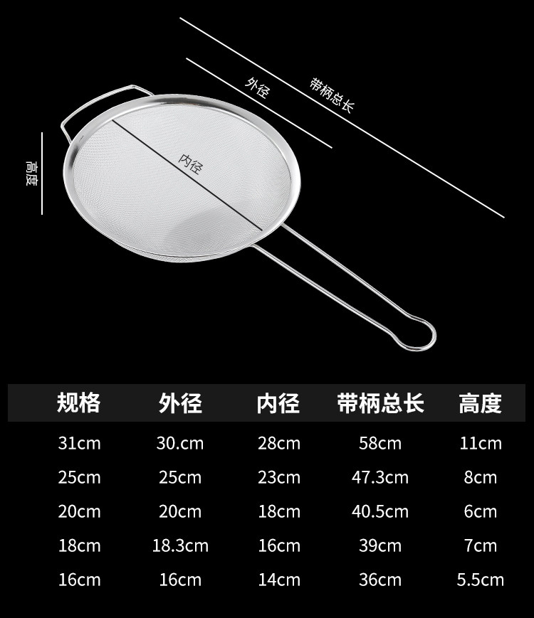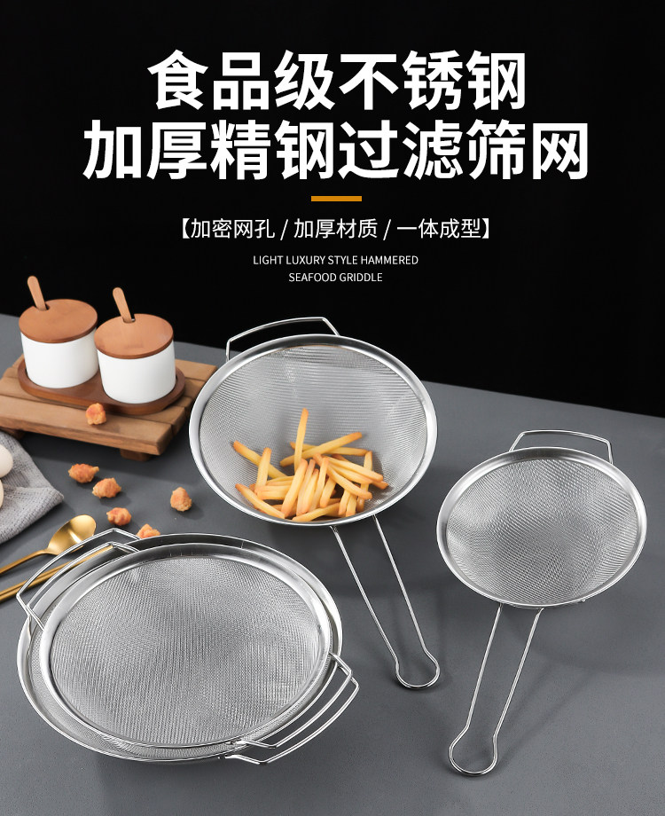 | Specification | 16cm extended handle screen,18cm extended handle screen,20cm extended handle screen,25cm extended handle screen,28cm extended handle screen,31cm extended handle screen,15cm double ear handle screen,20cm double ear handle screen,25cm double ear handle screen,31cm double ear handle screen,28cm double ear handle screen |