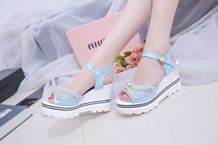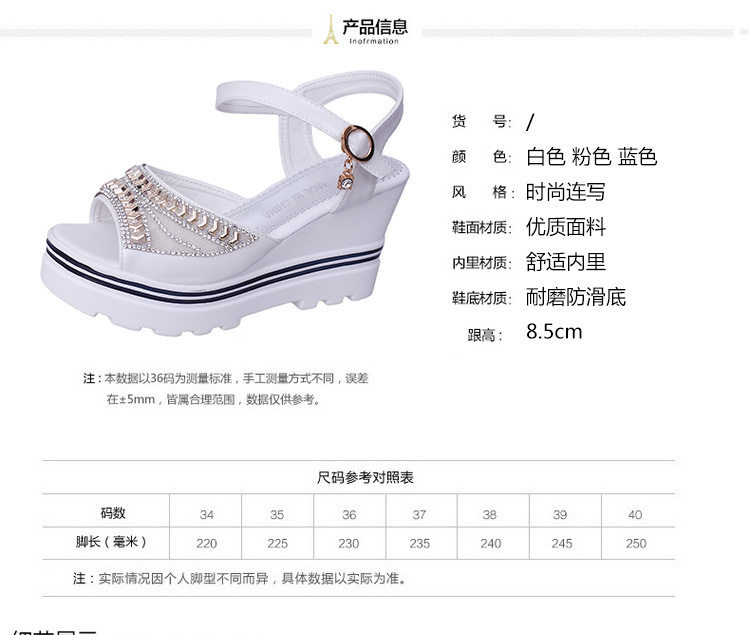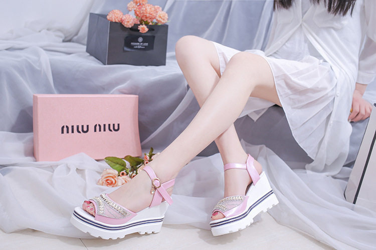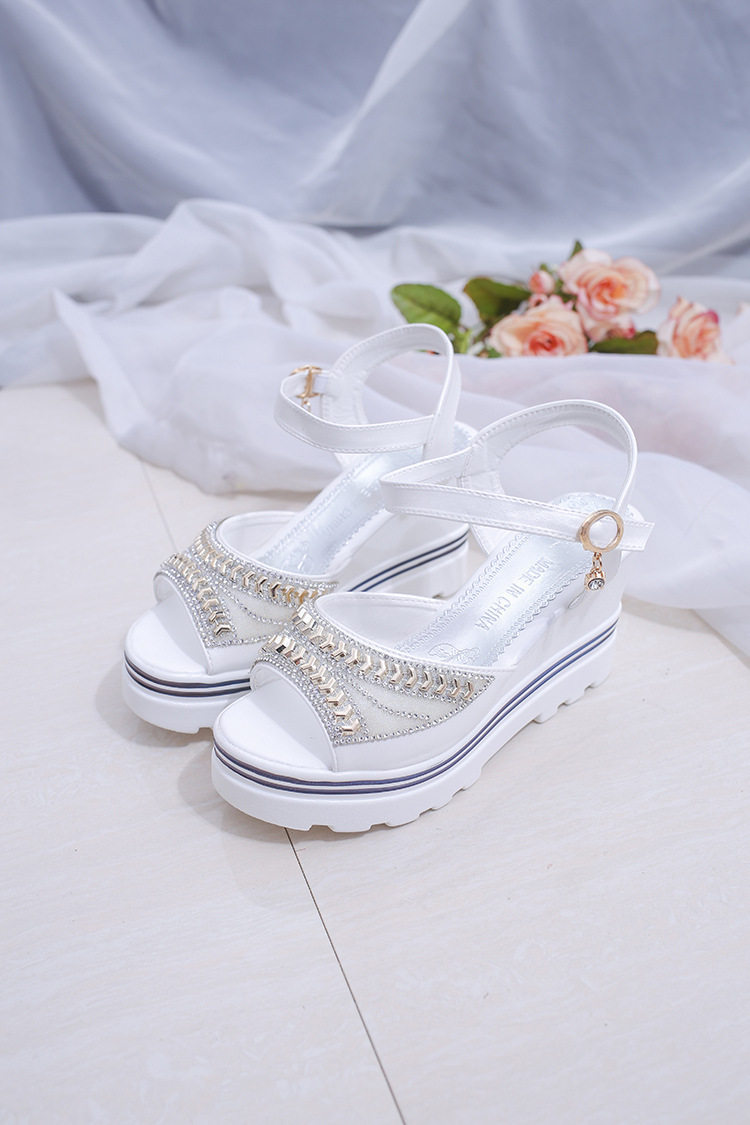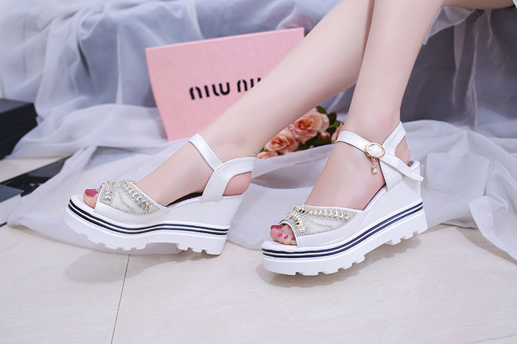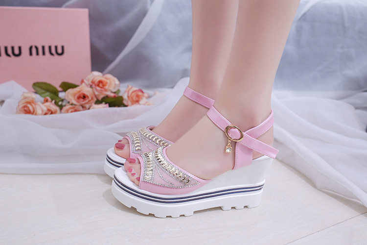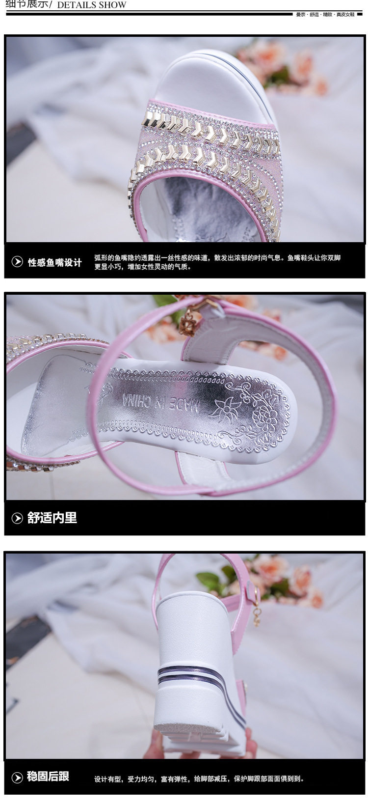 Sandals Women's 2025 Summer New Sandals Women's Wedge Rhinestone Fashion One-Word Buckle Fish Mouth Women's Shoes