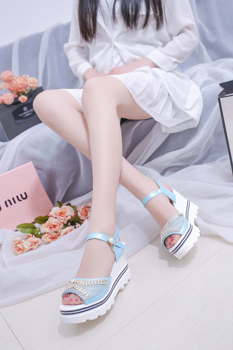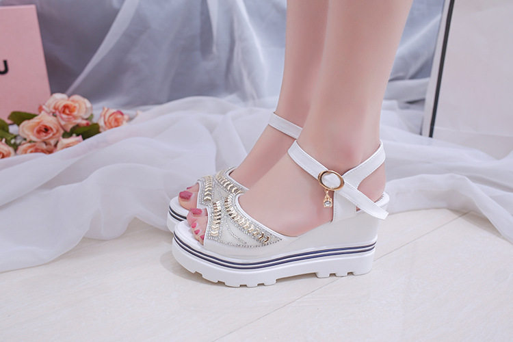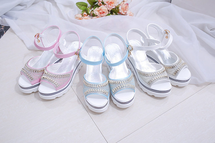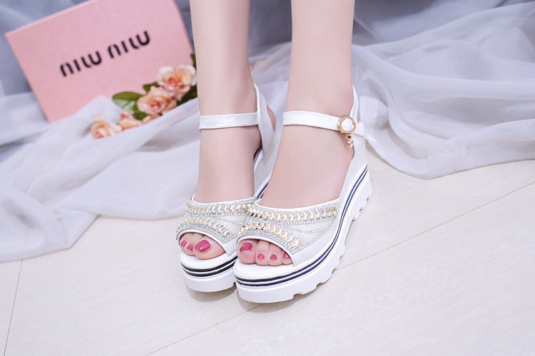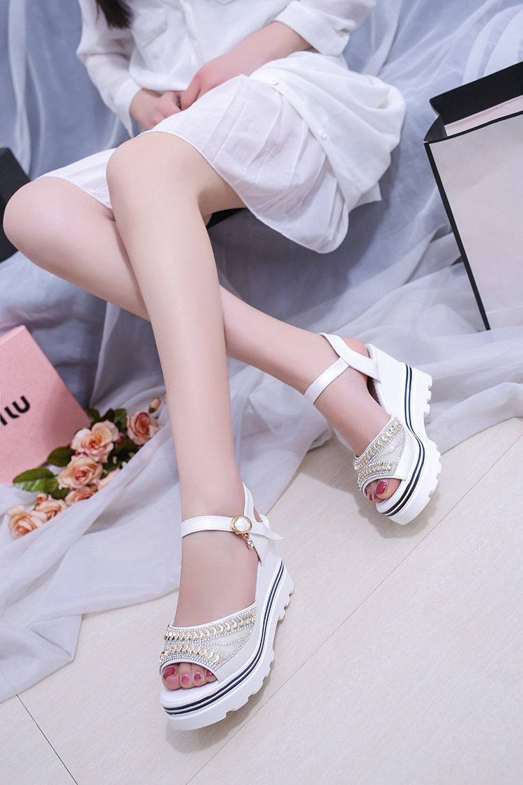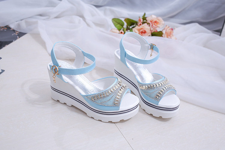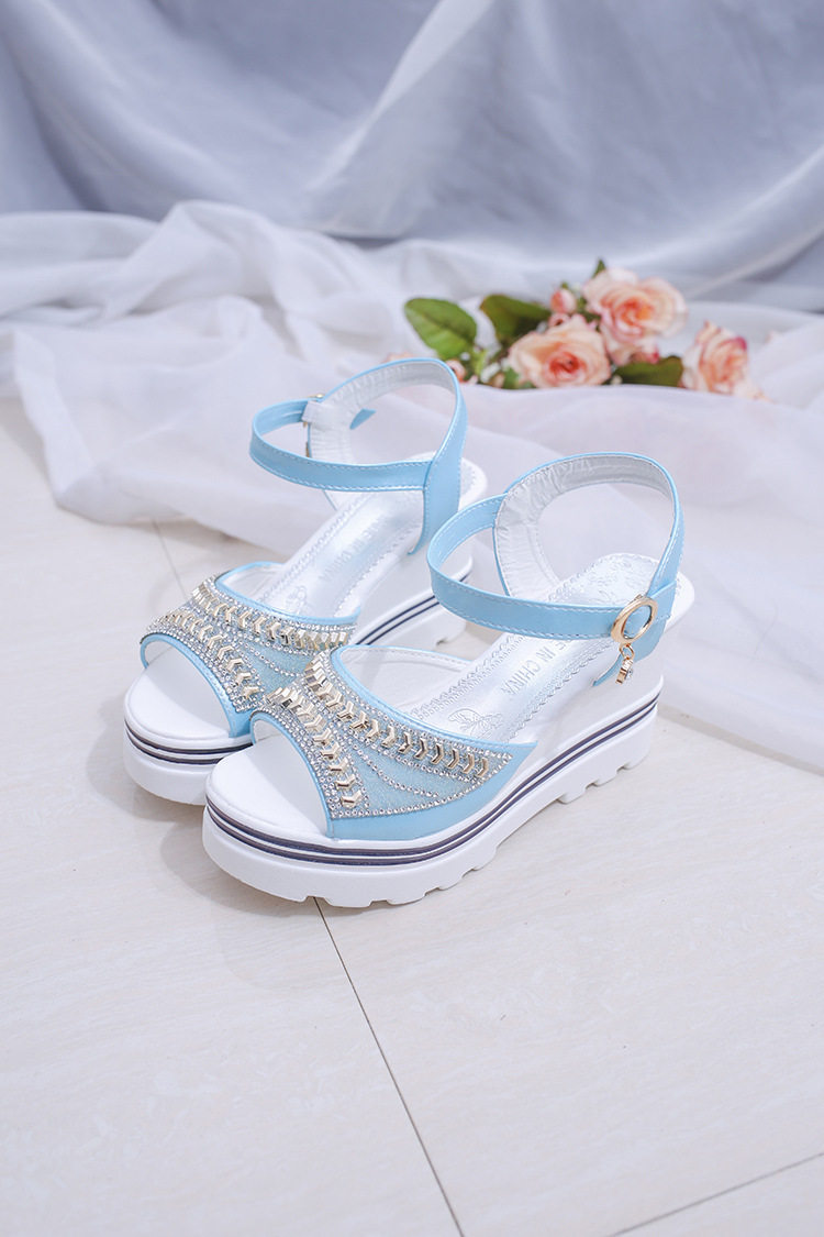Sandals Women's 2025 Summer New Sandals Women's Wedge Rhinestone Fashion One-Word Buckle Fish Mouth Women's Shoes