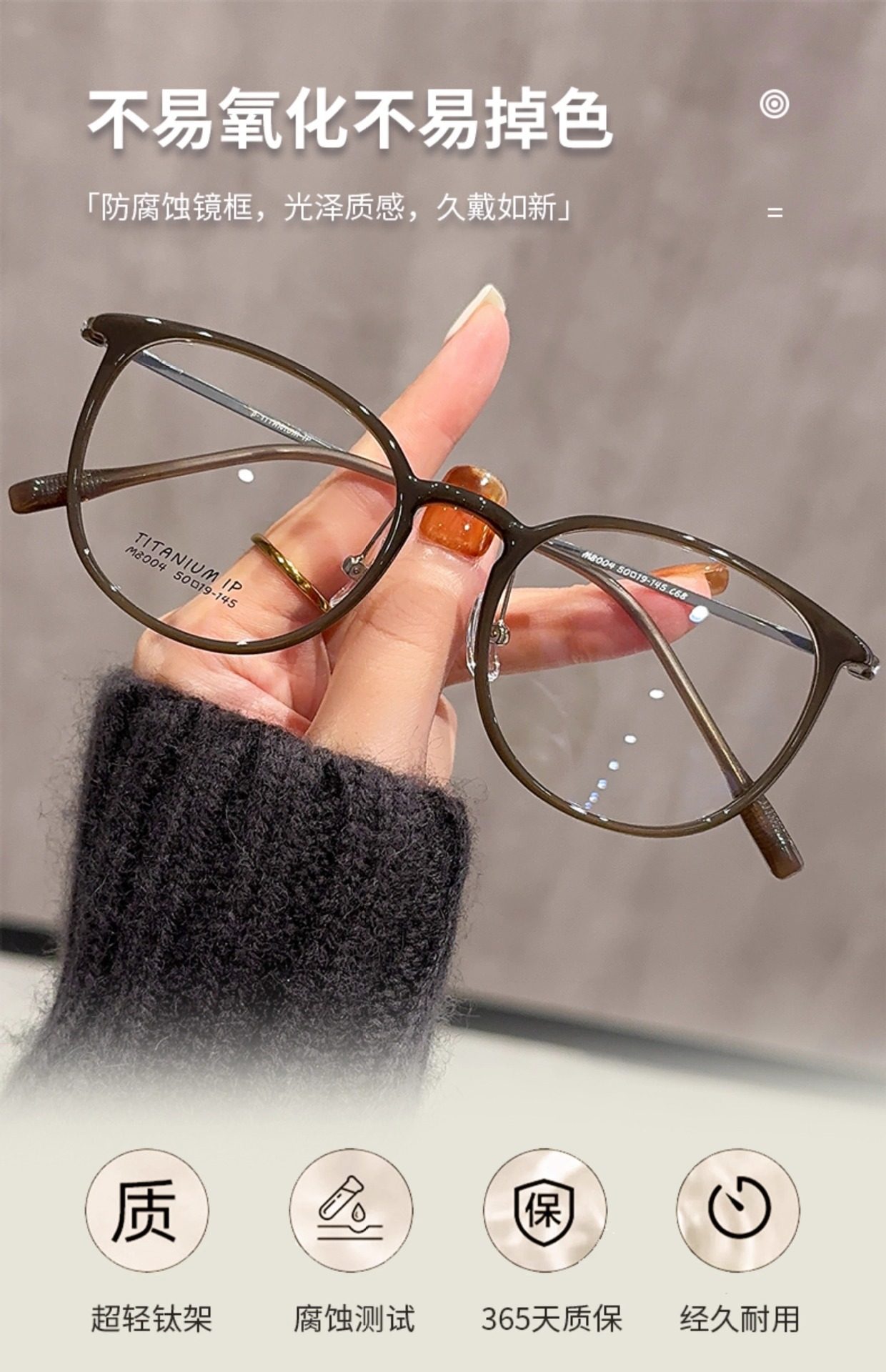 New ultra-light pure titanium large-frame glasses women's face small M8004 Danyang glasses net red brown frame wholesale
