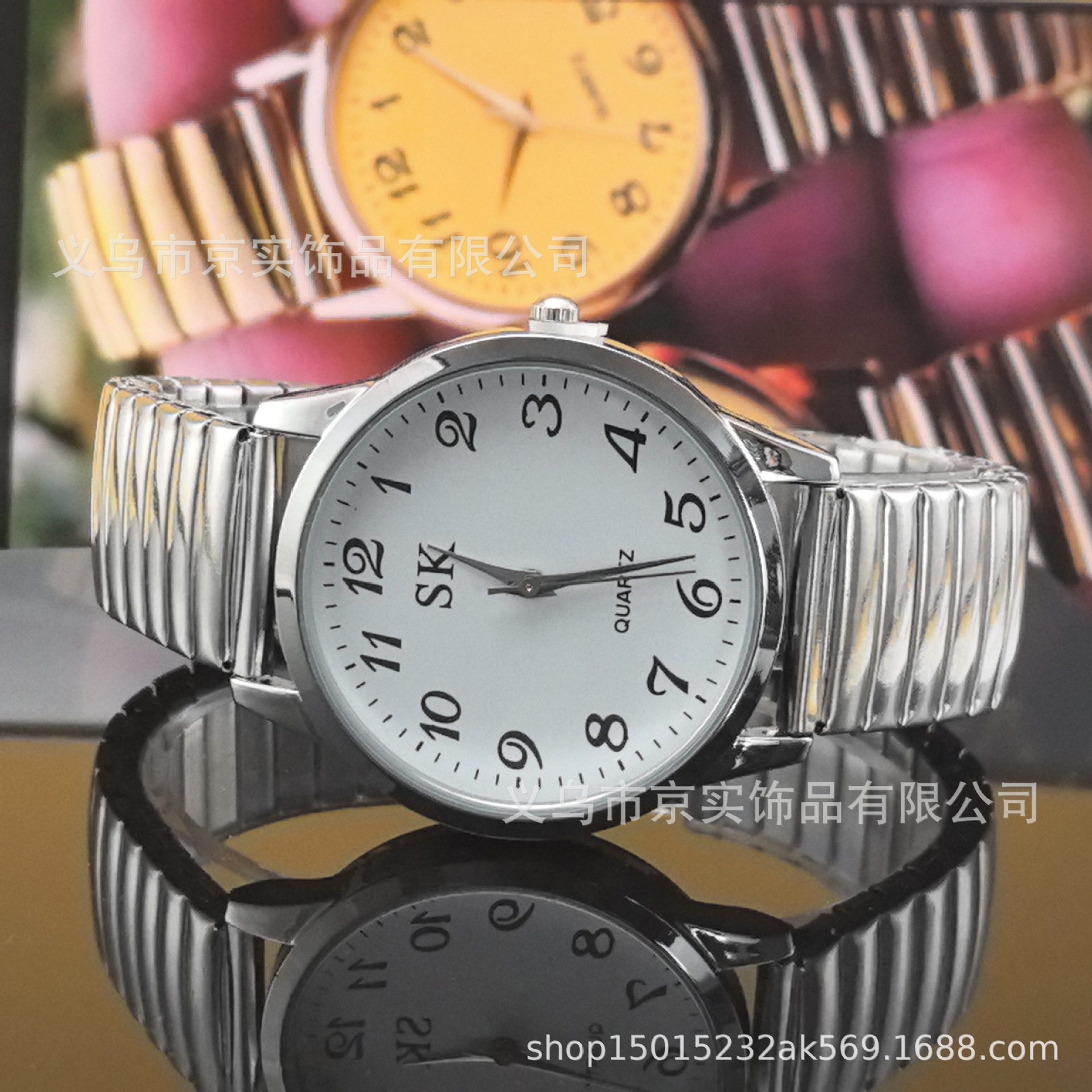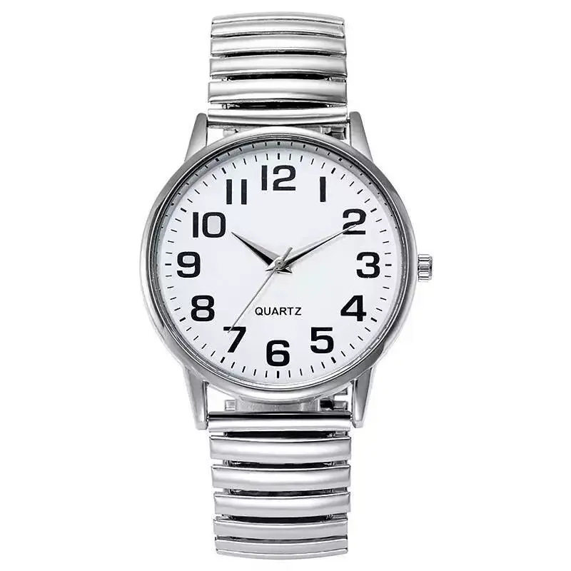 Middle-Aged and Elderly Pointer Digital Face Men and Women Quartz Large Dial Watch Elastic Band Couple Fashion Wholesale
