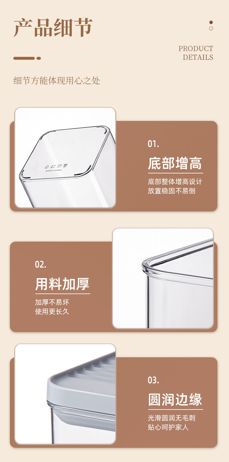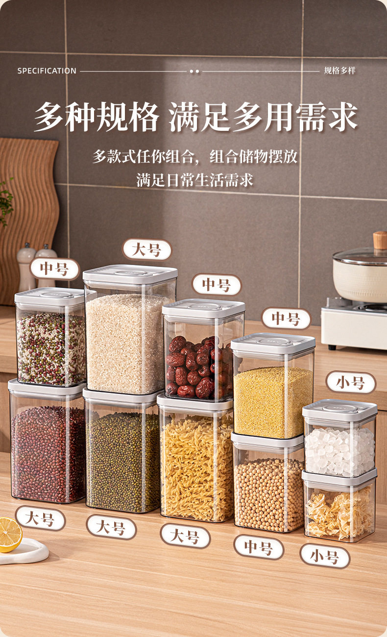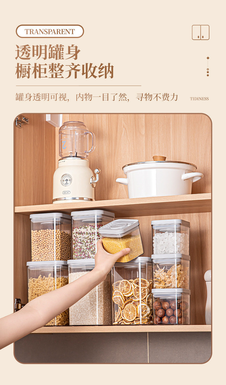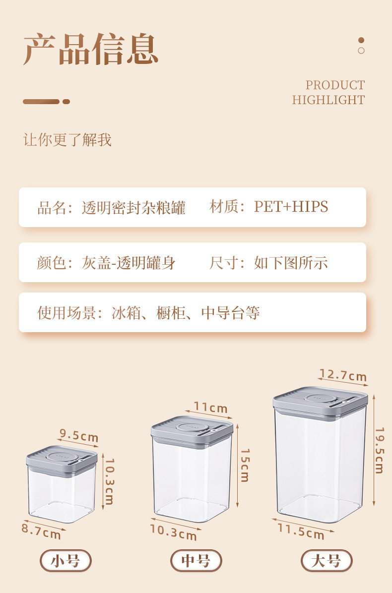 Chronometer-Pressed Sealed Cans, Transparent 3-Piece Set, Square Pet, Extra-Large Capacity Plastic Kitchen Fresh-Keeping Storage Containers