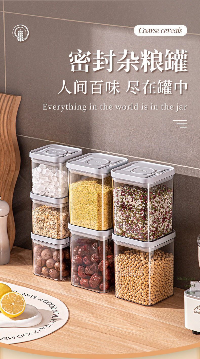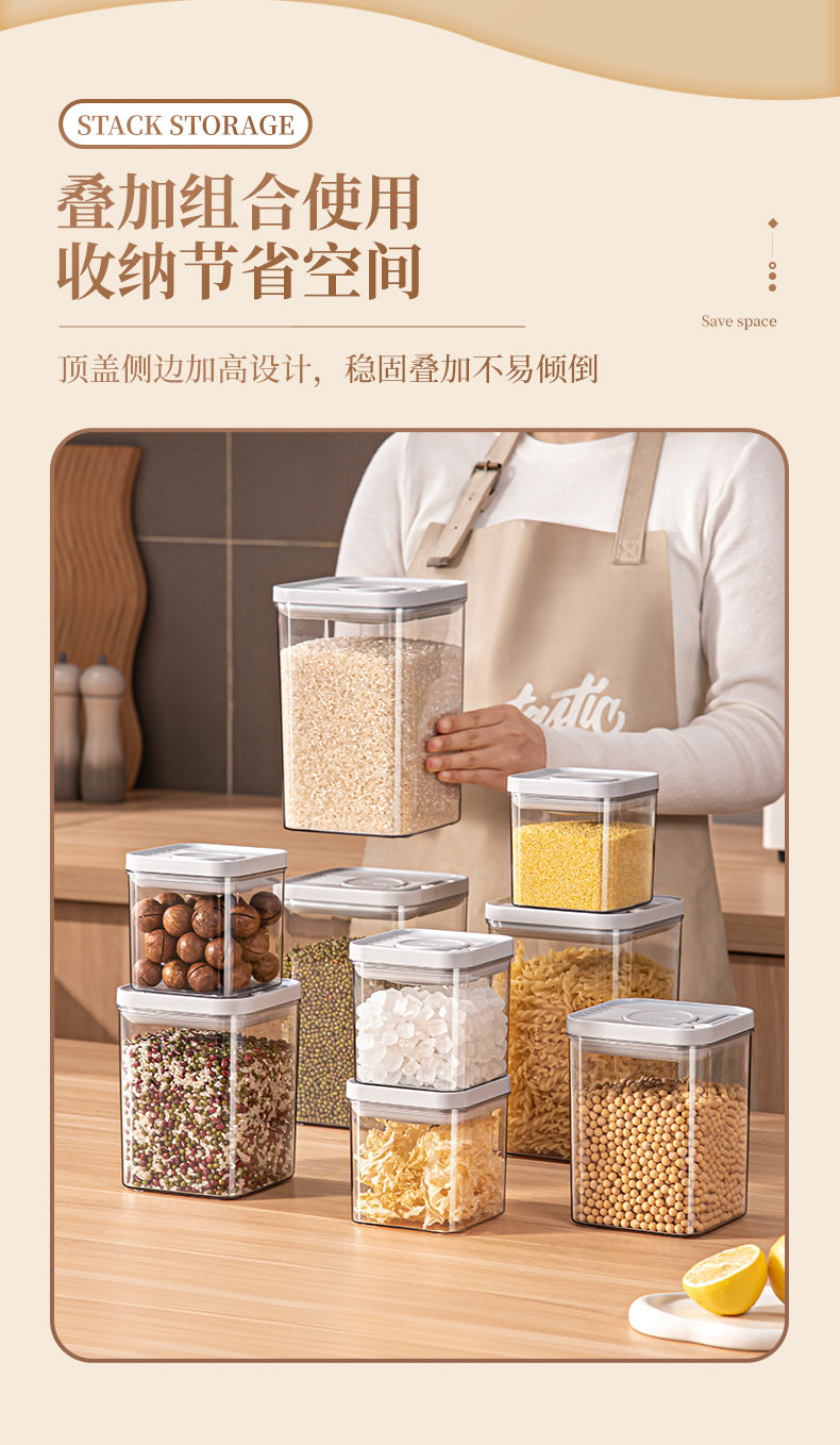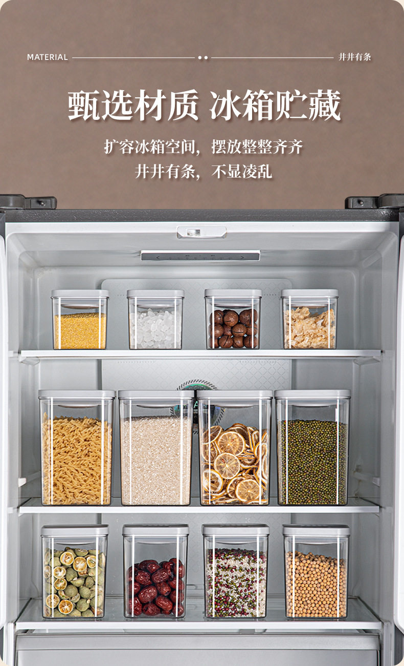 Chronometer-Pressed Sealed Cans, Transparent 3-Piece Set, Square Pet, Extra-Large Capacity Plastic Kitchen Fresh-Keeping Storage Containers