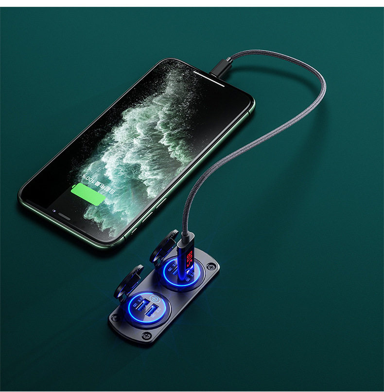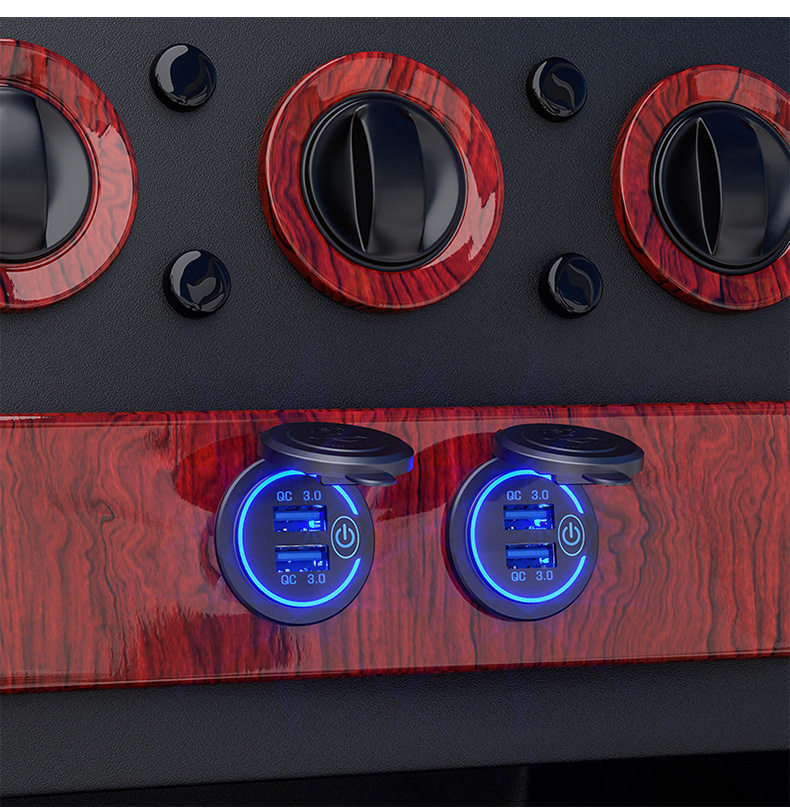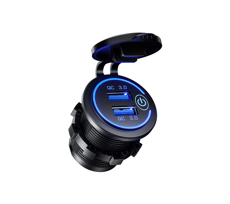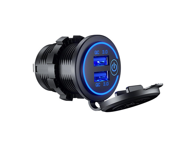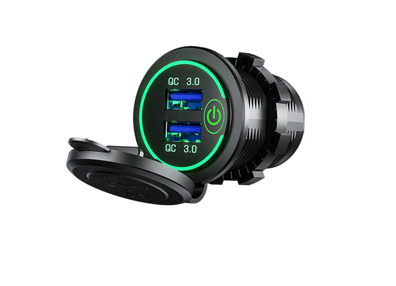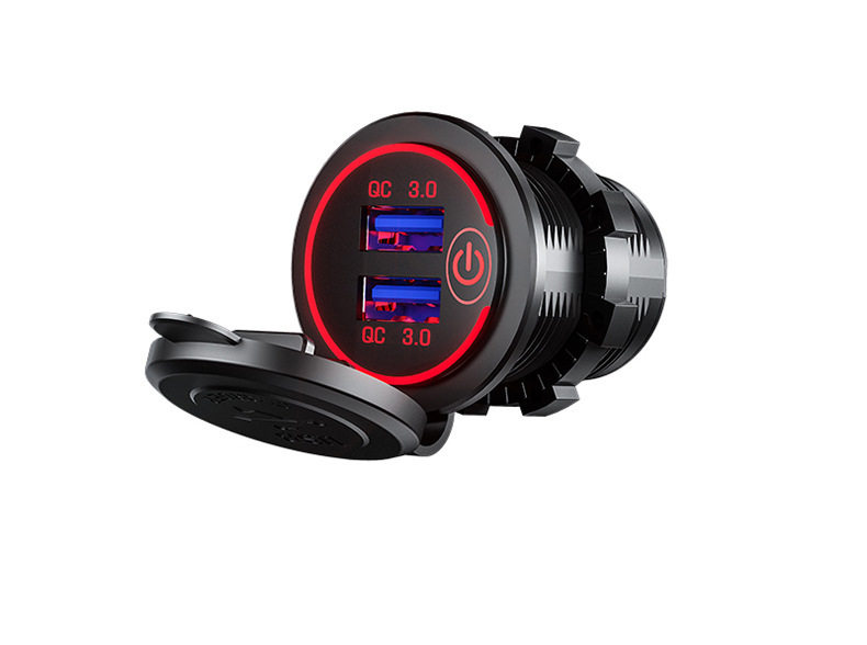 Cross-Border Car Appliance Modified Motorcycle Universal Touch Switch Dual USB Car Qc3.0 Fast Charging Car Charger