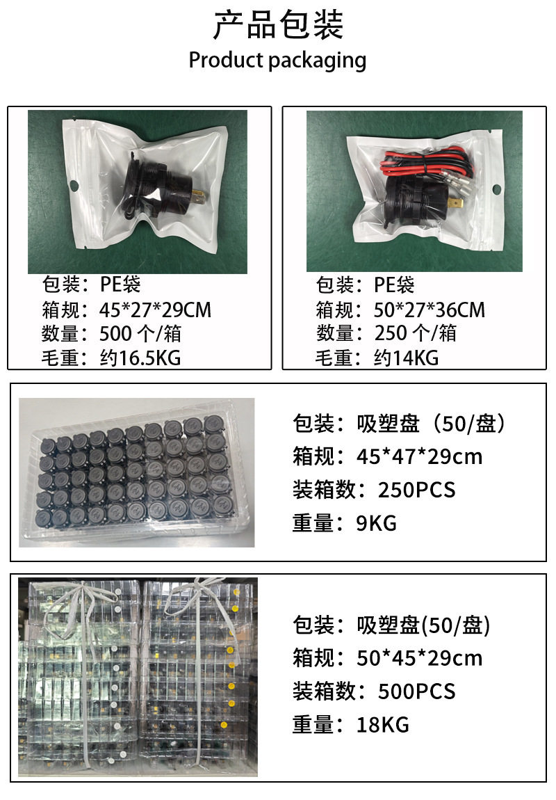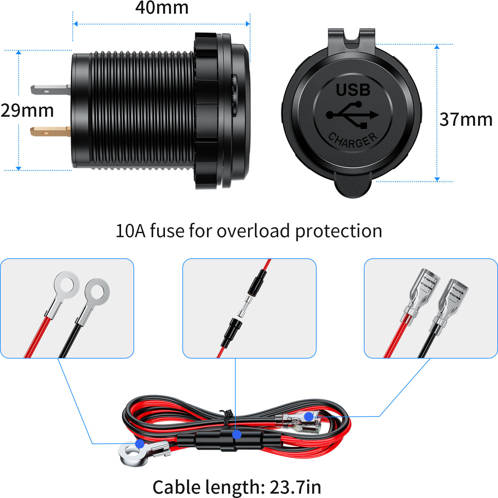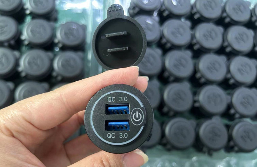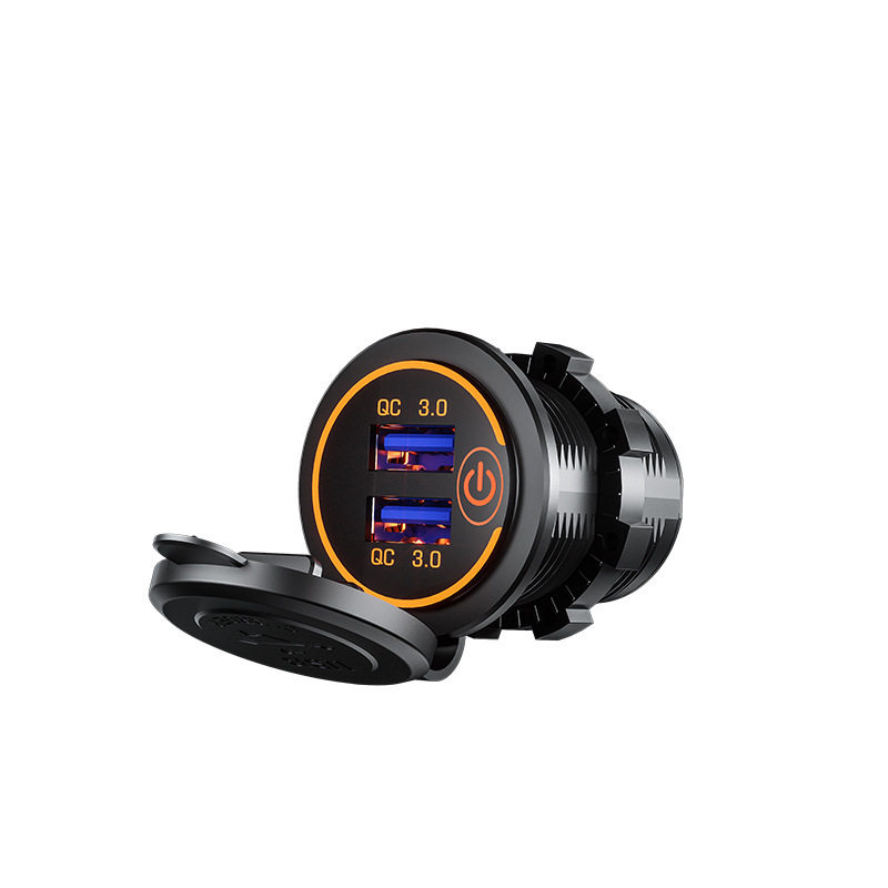 Cross-Border Car Appliance Modified Motorcycle Universal Touch Switch Dual USB Car Qc3.0 Fast Charging Car Charger