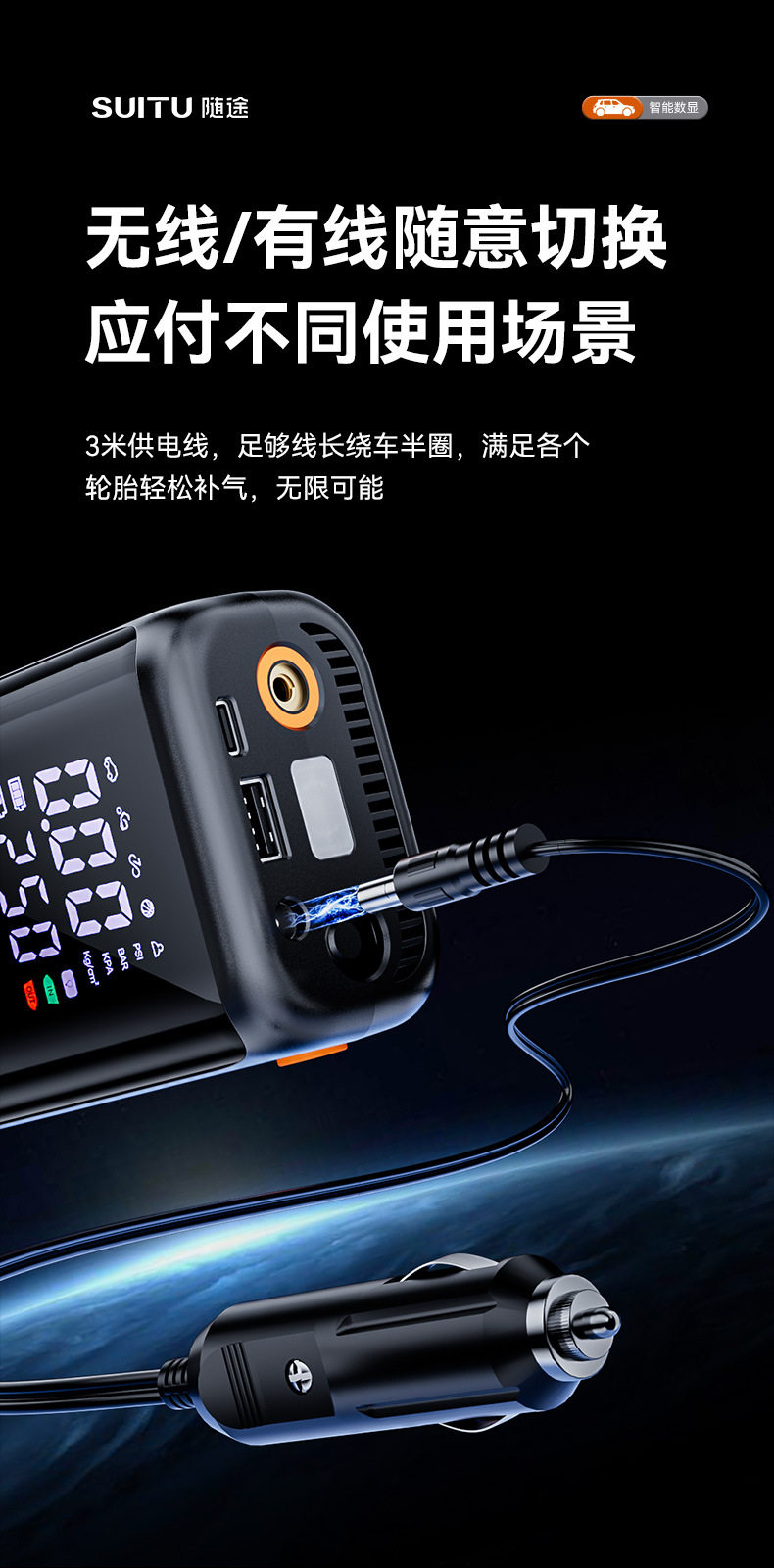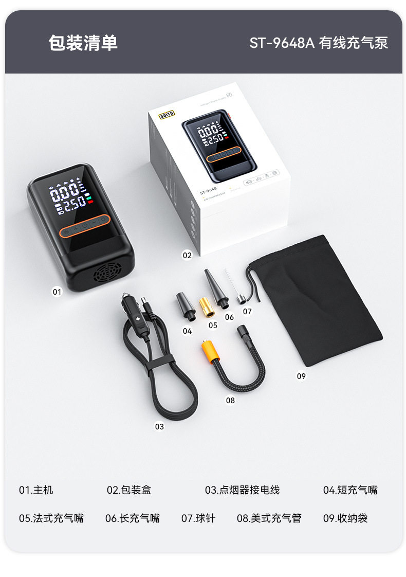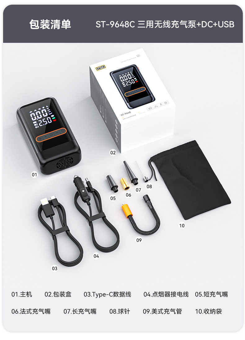 | Specification | Wired air pump,Dual-purpose wireless air pump + usb ultra-clear dual-screen digital display★6000mah long battery life★Preset tire pressure★Smart charging and stopping,Three-way wireless air pump + dc + usb ultra-clear dual-screen digital display ★ 6000mah long battery life ★ Cigarette lighter power supply ★ Preset tire pressure ★ Smart charging and stopping |